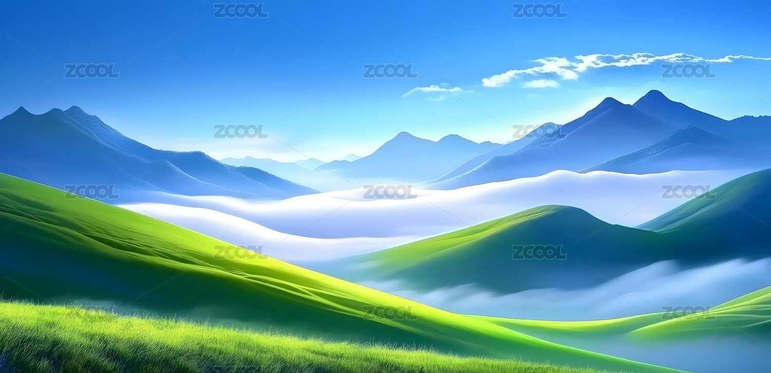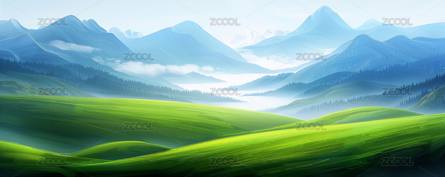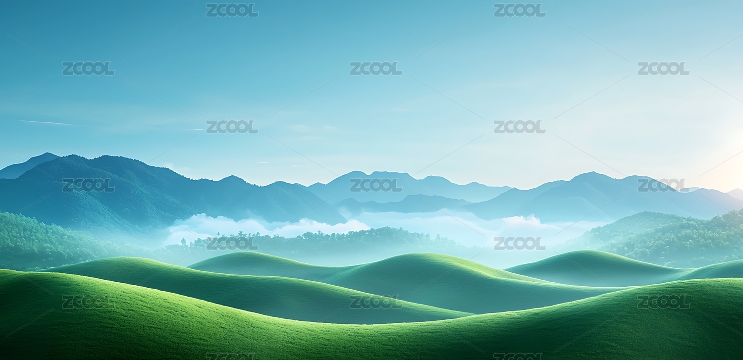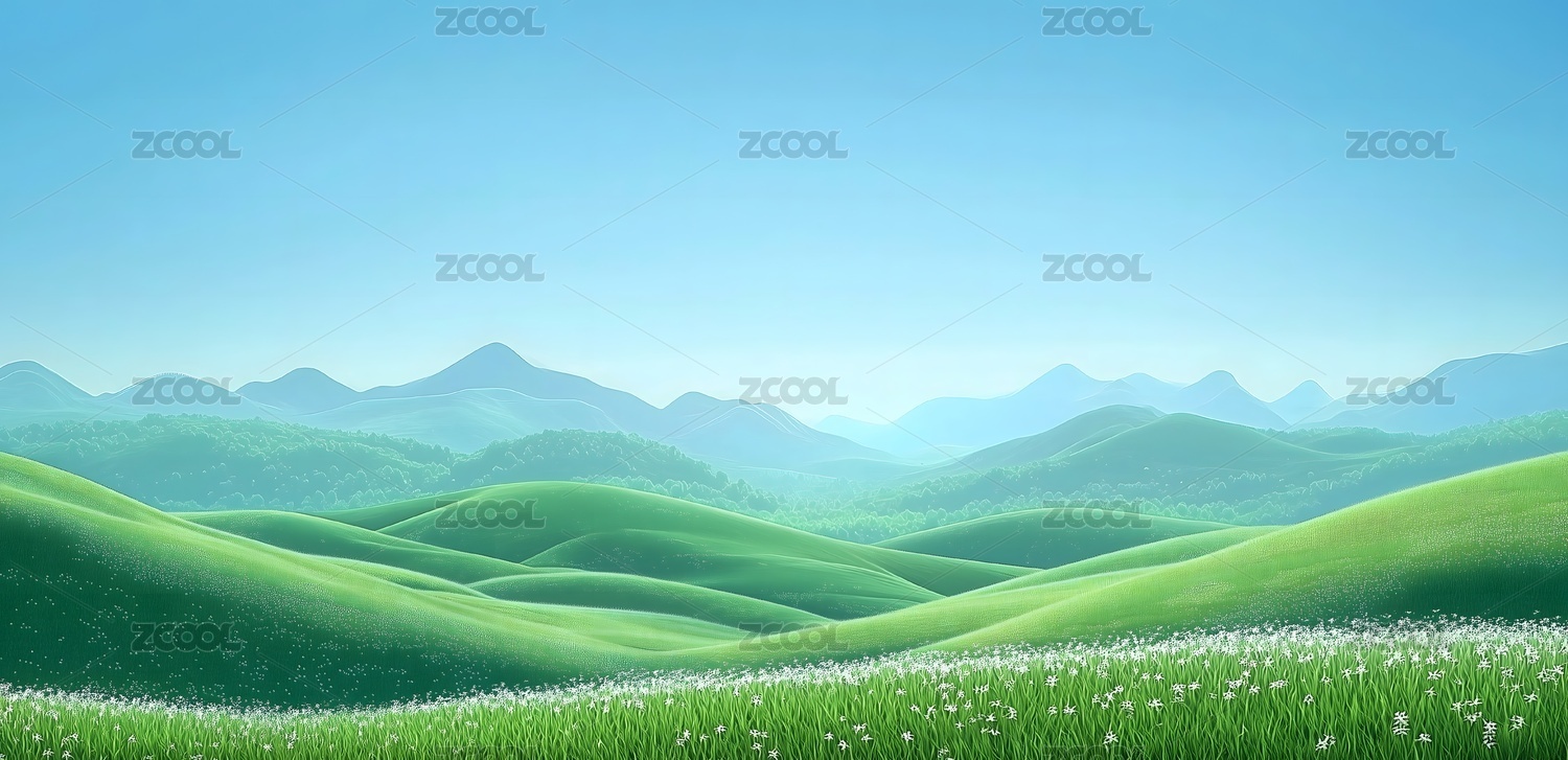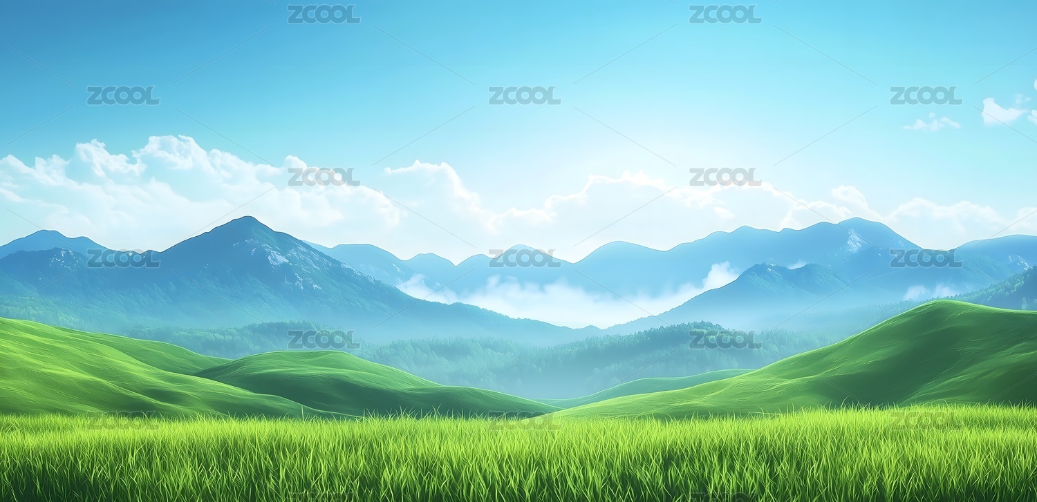 翠绿山峦青葱草原