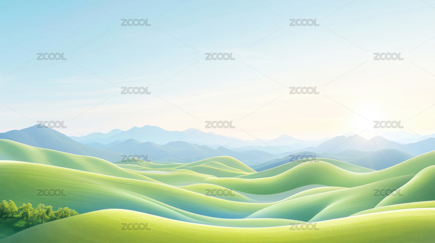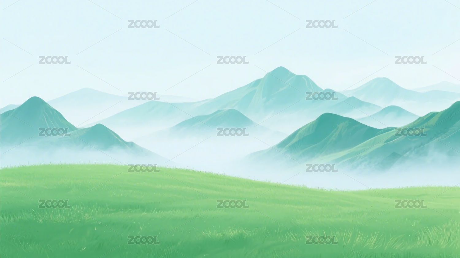 清新绿色山峦风景插画