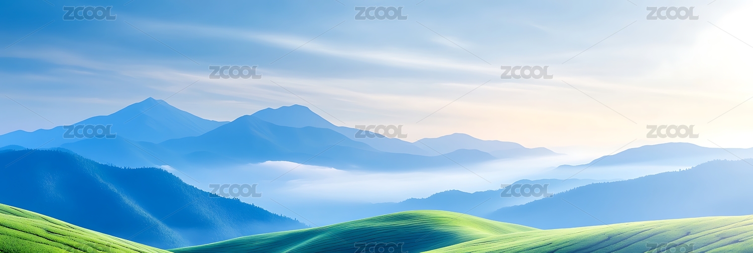 绿色,山峦,草地,阳光,清新,自然,风景,远山,雾气,山脉