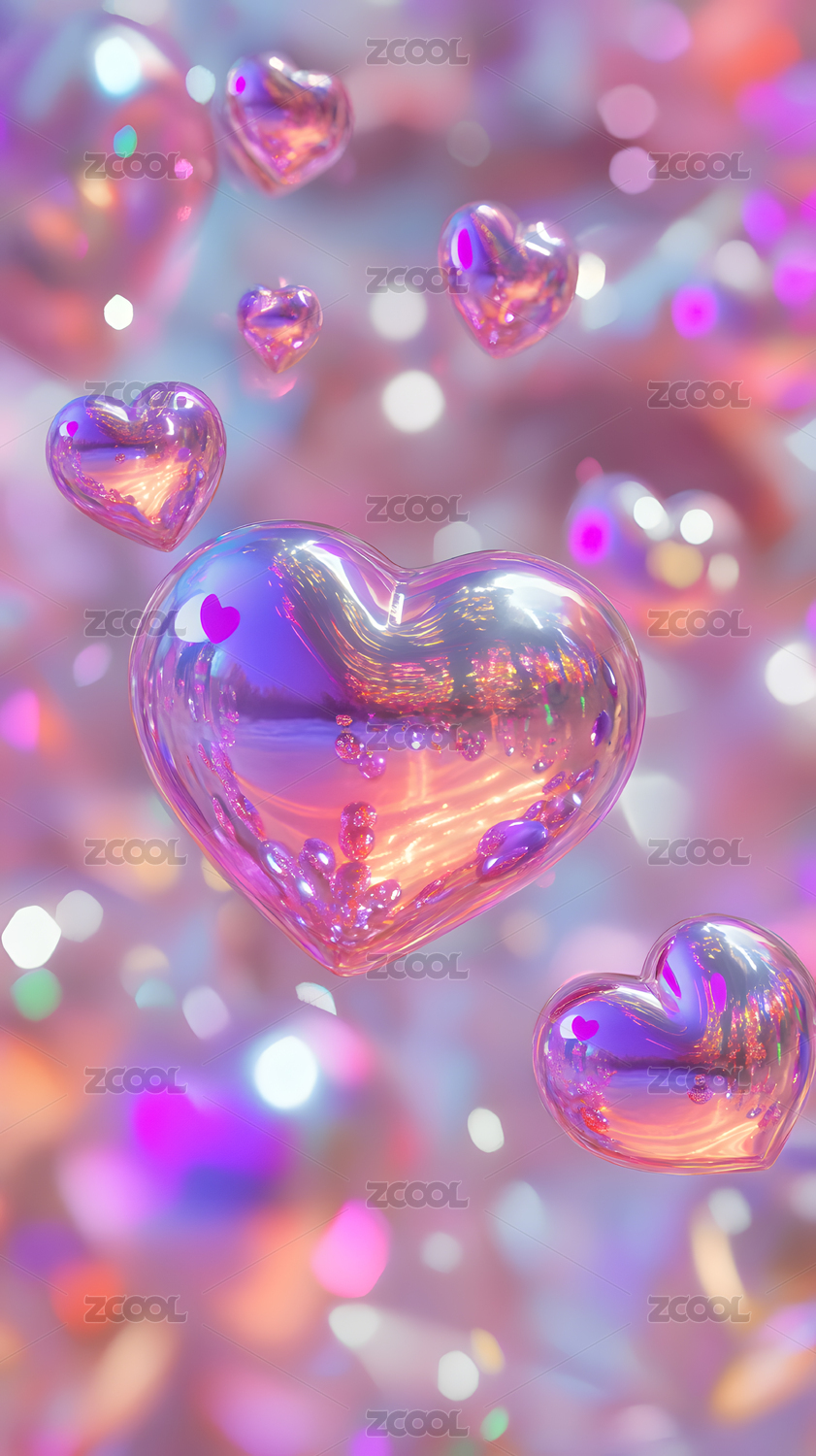 紫色水晶爱心背景图