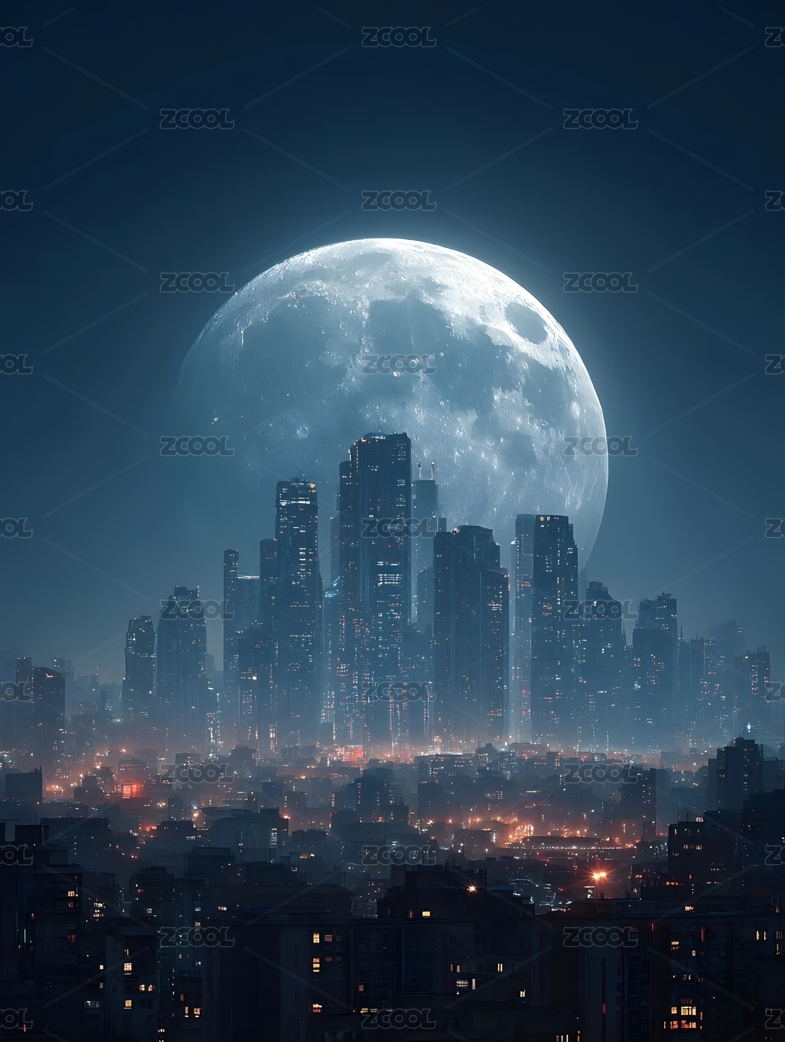 巨大月亮与城市夜景