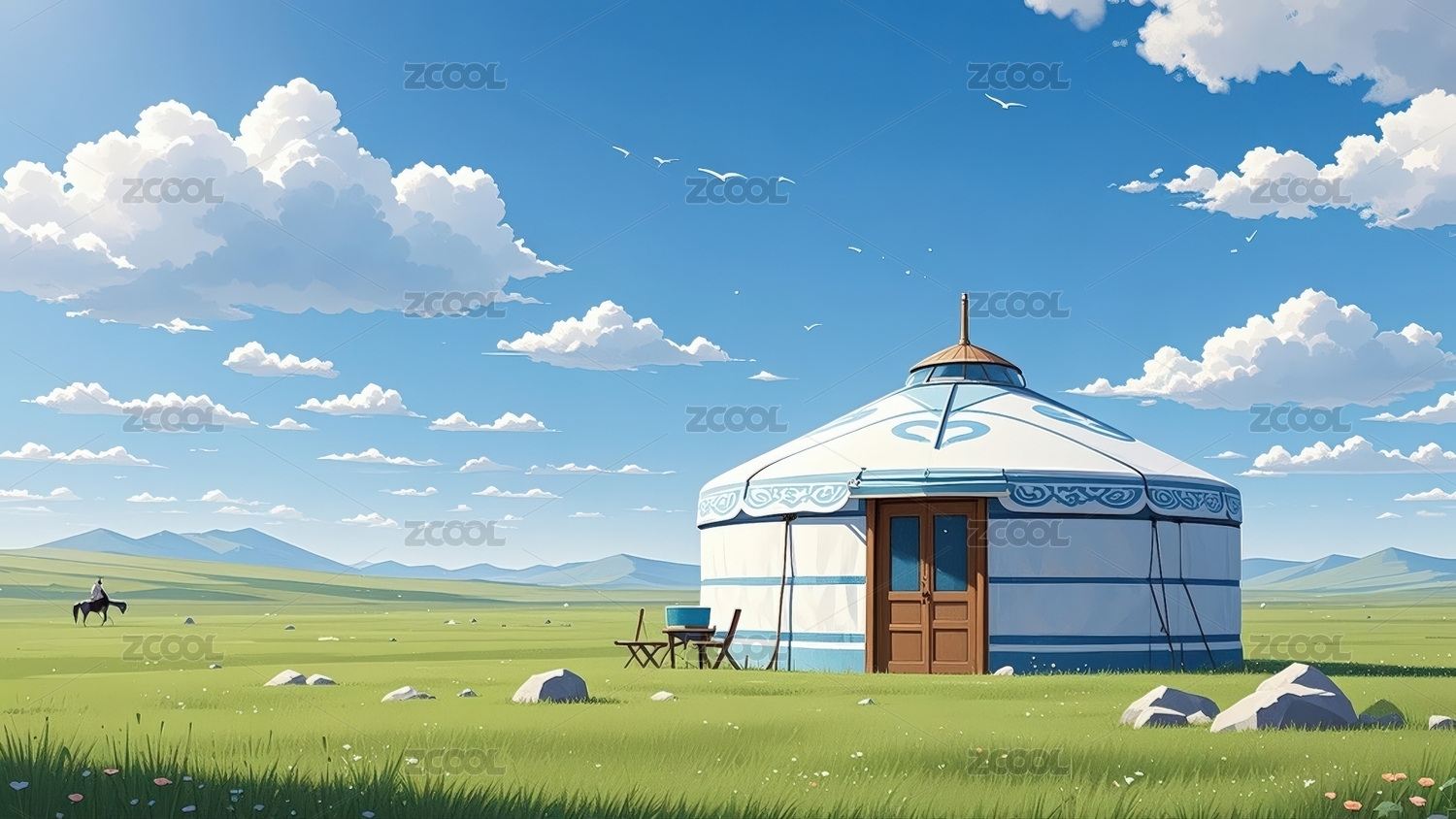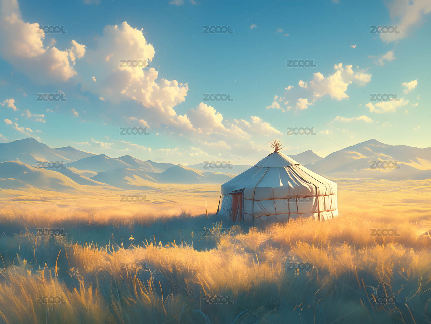 草原的毡房风景插画