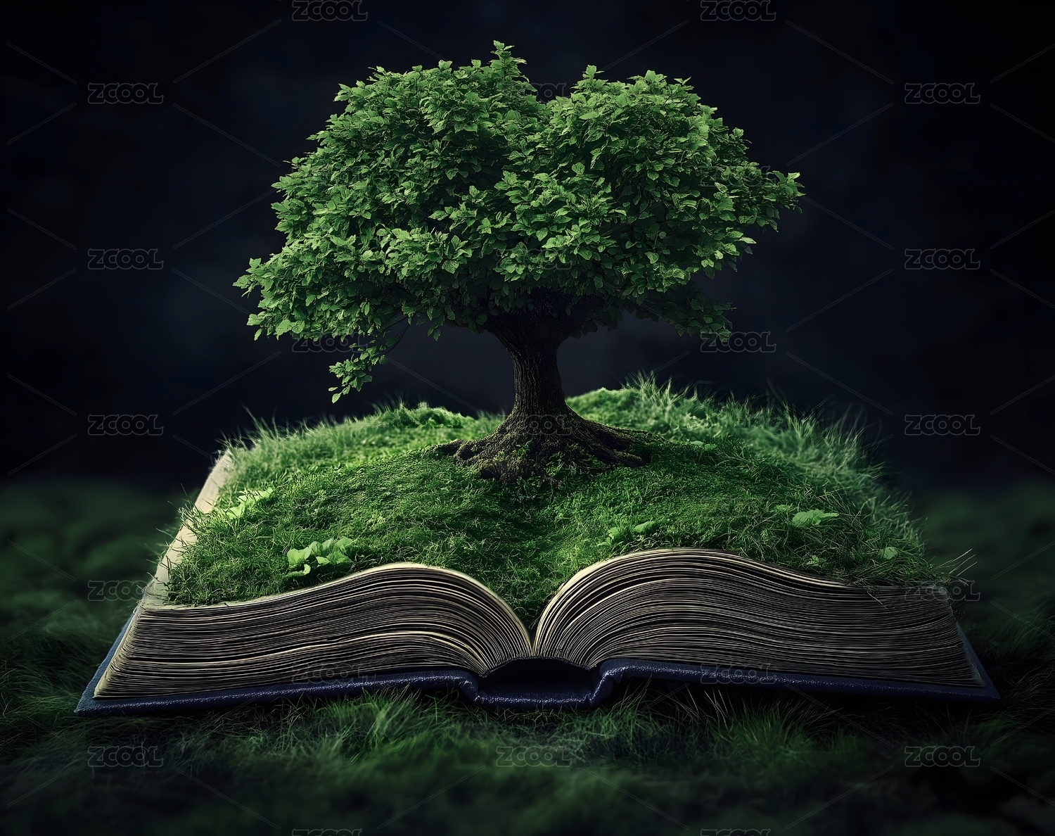 大书与树木生长的创意合成图