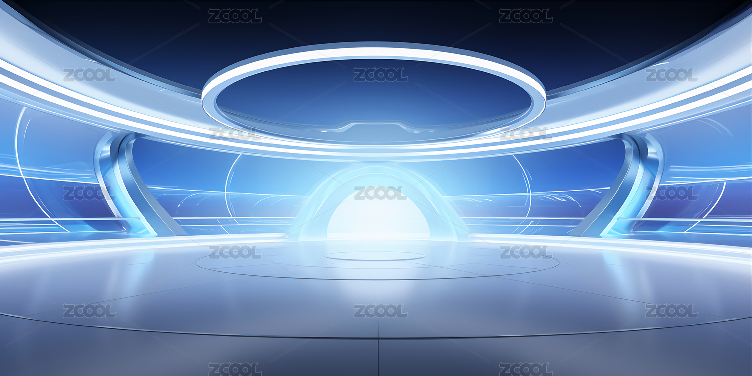 未来,科技,展厅,圆形,平台,发光,环形,光线,明亮,金属