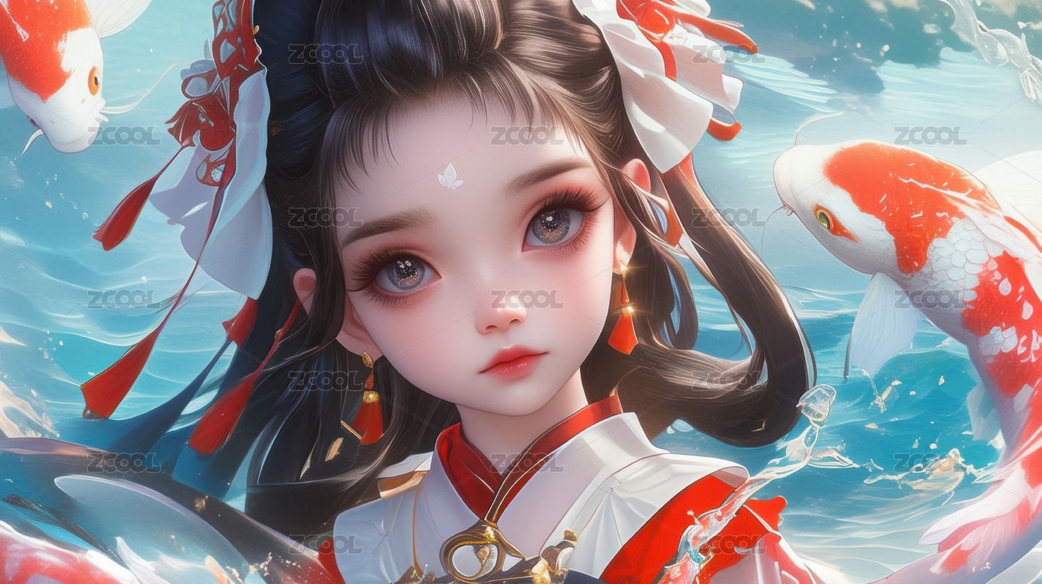中国风,女孩, 可爱, 古装, 节日, 烟花, 建筑, 传统, 动画, 喜庆