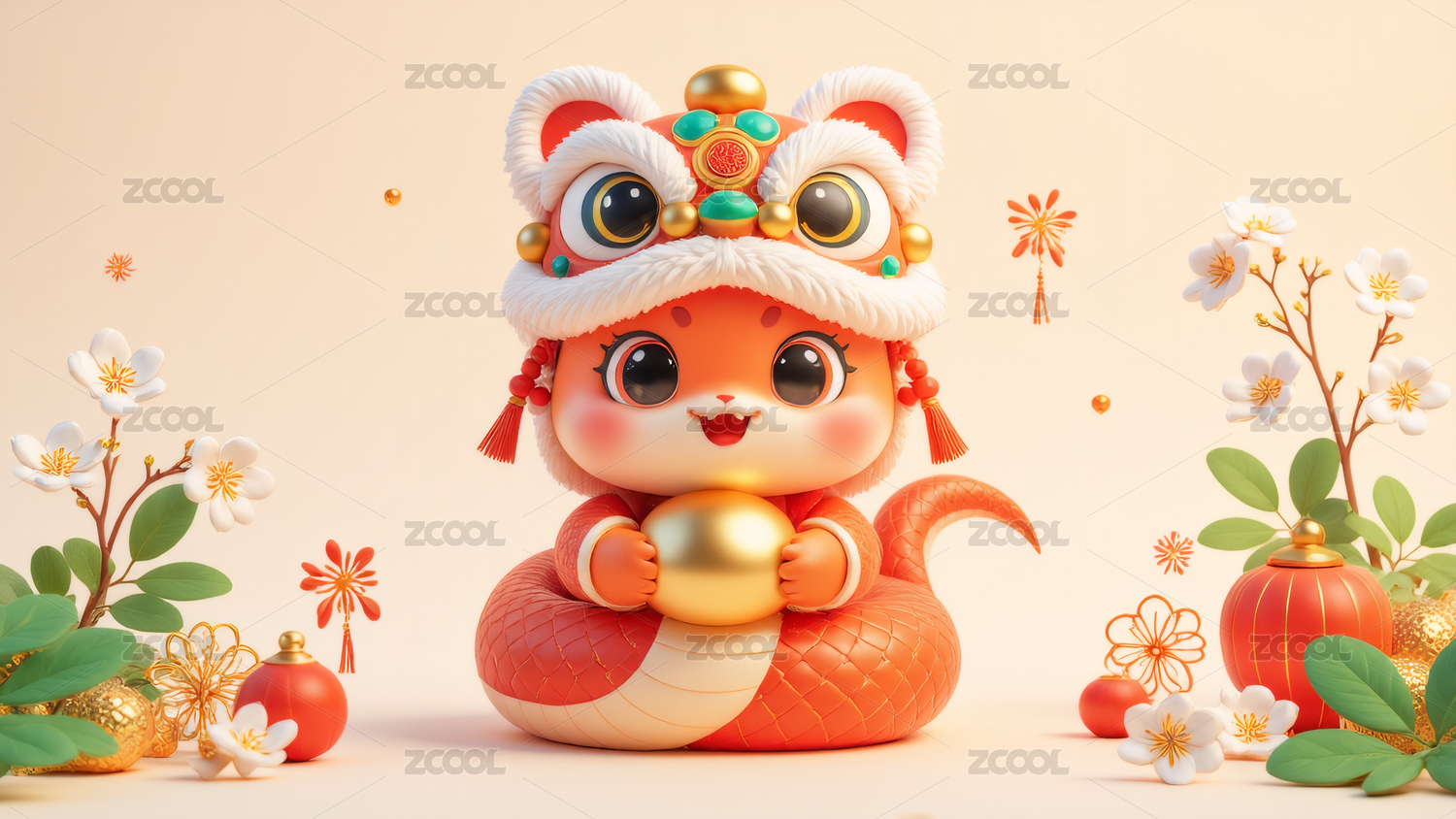 3D卡通新年红色生肖蛇