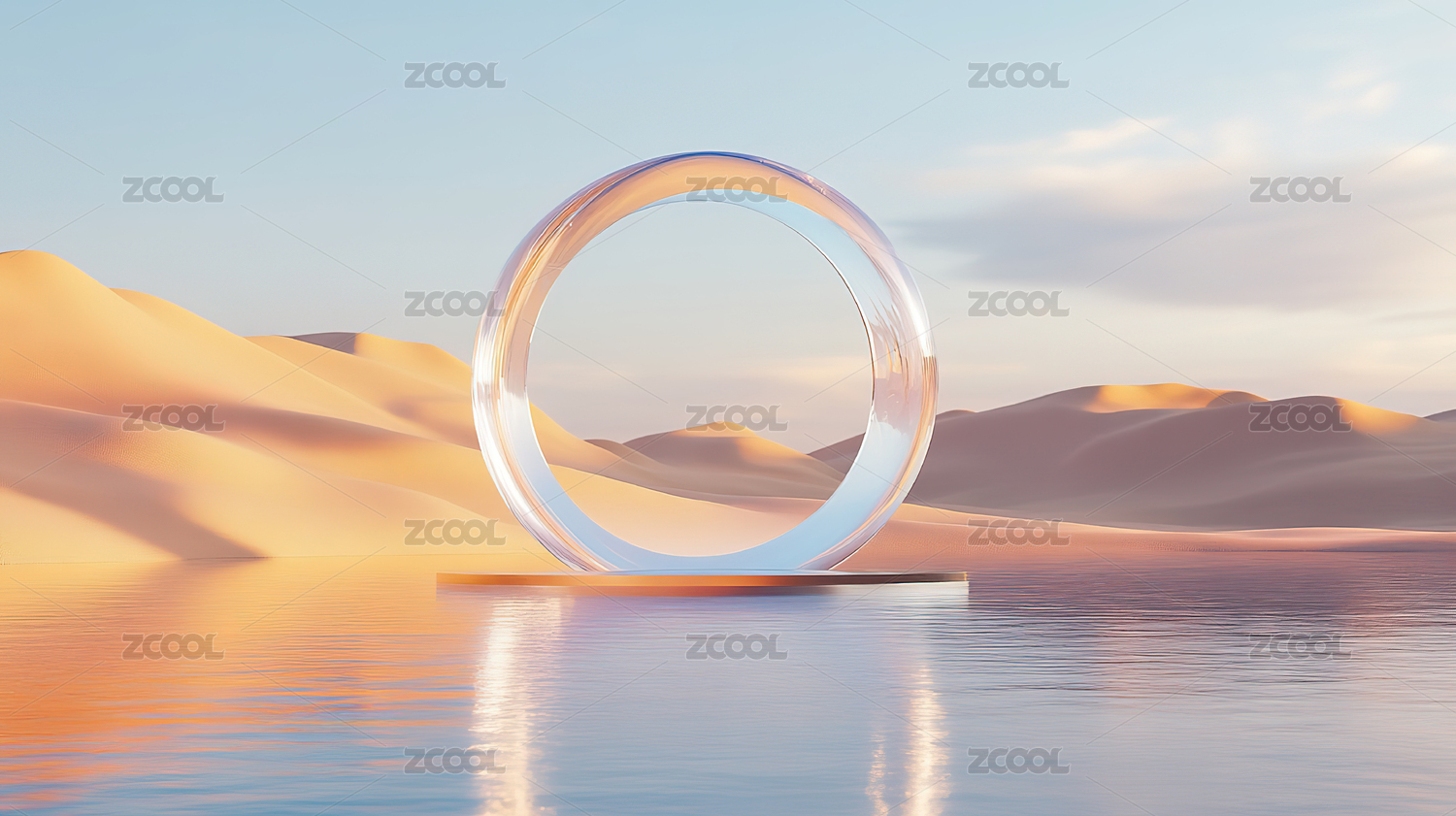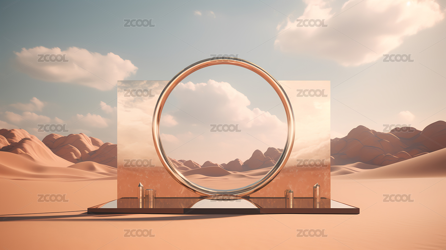 沙漠,圆形,舞台,日落,山脉,云朵,景观