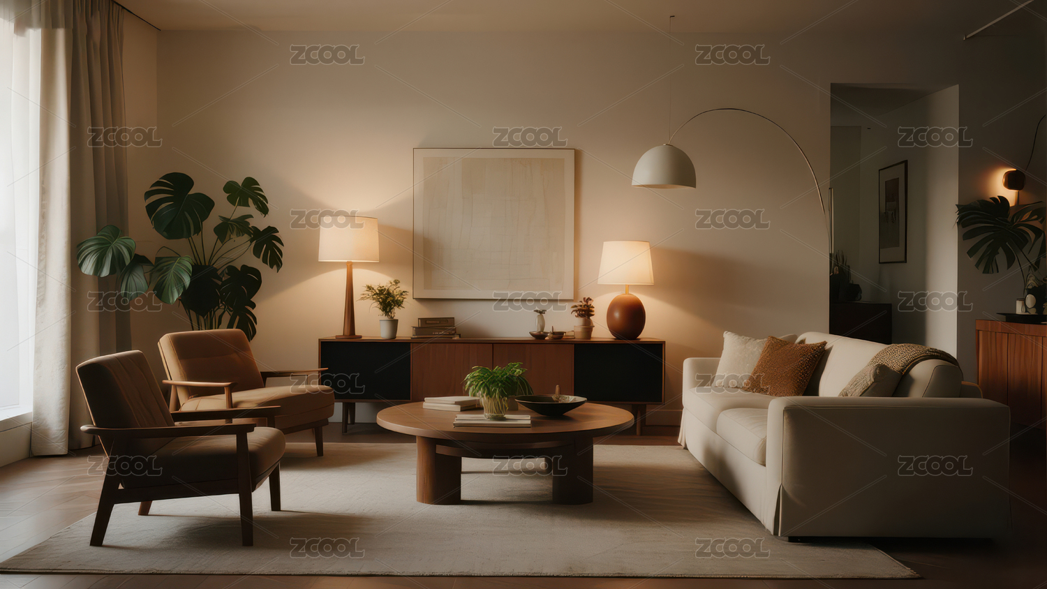 客厅,沙发,椅子,植物,落地灯,画框,窗帘,地毯,阳光,家具