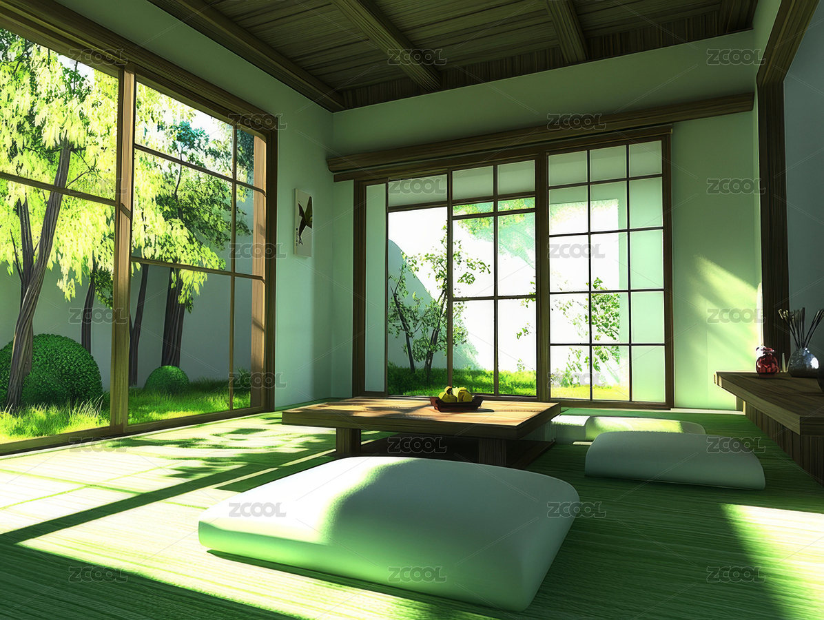 日式,室内,设计,榻榻米,窗户,自然光,绿色,植物,简约,宁静