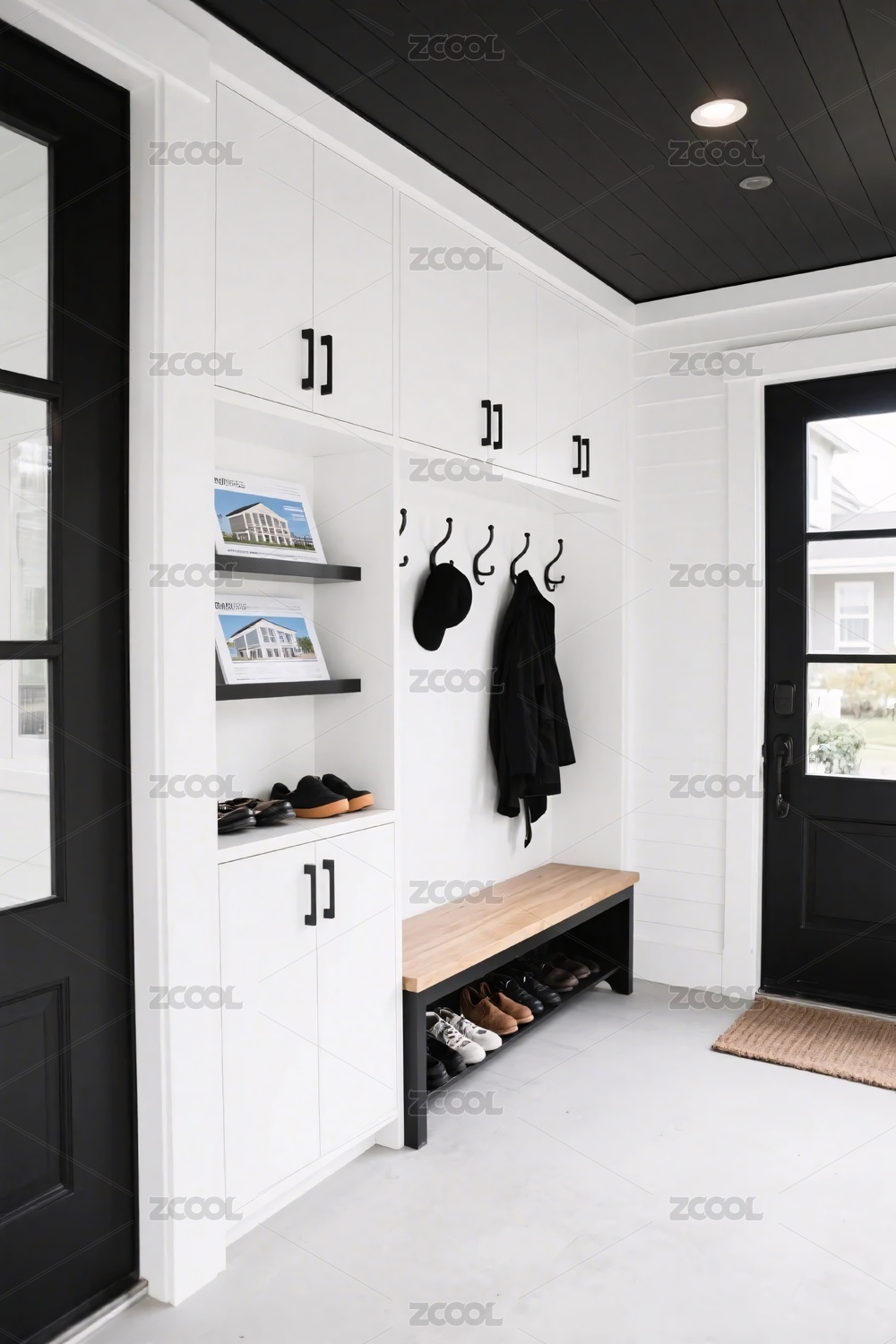 门厅,鞋柜,长椅,枕头,吊灯,玻璃门,木地板,储物架