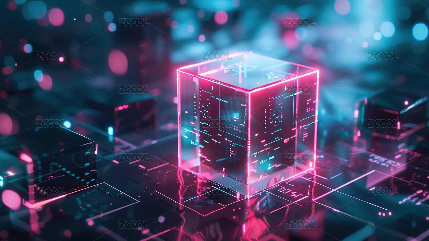 科技,抽象,数据,未来,网络,立方体,粒子,蓝色,光效,数字