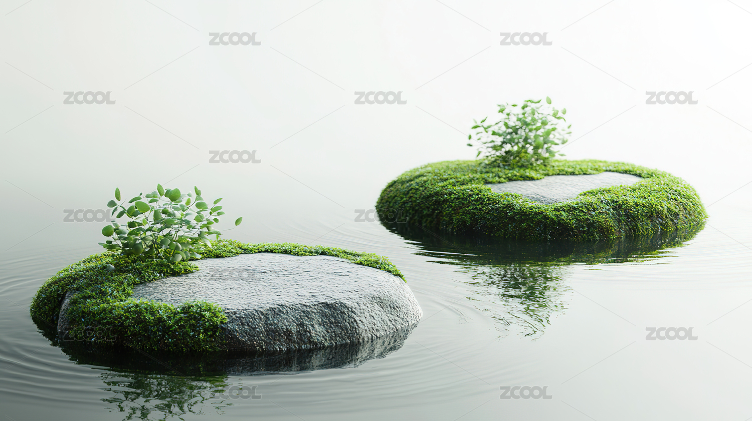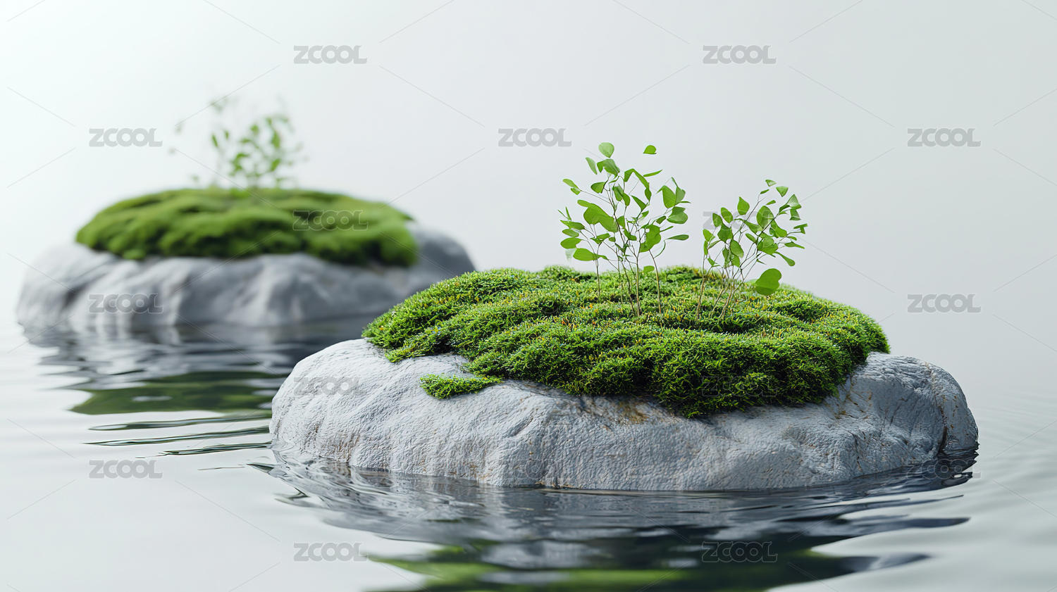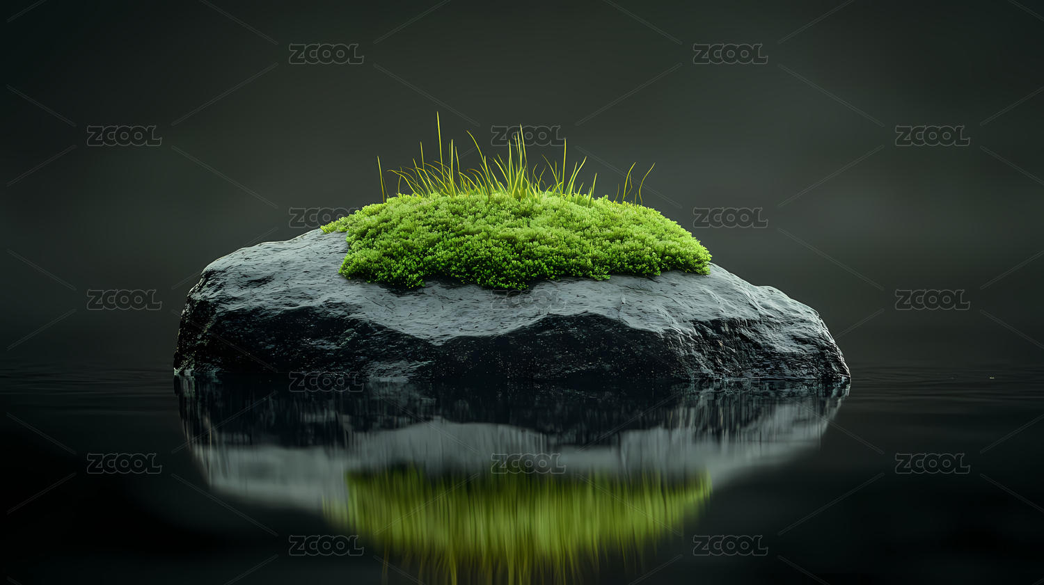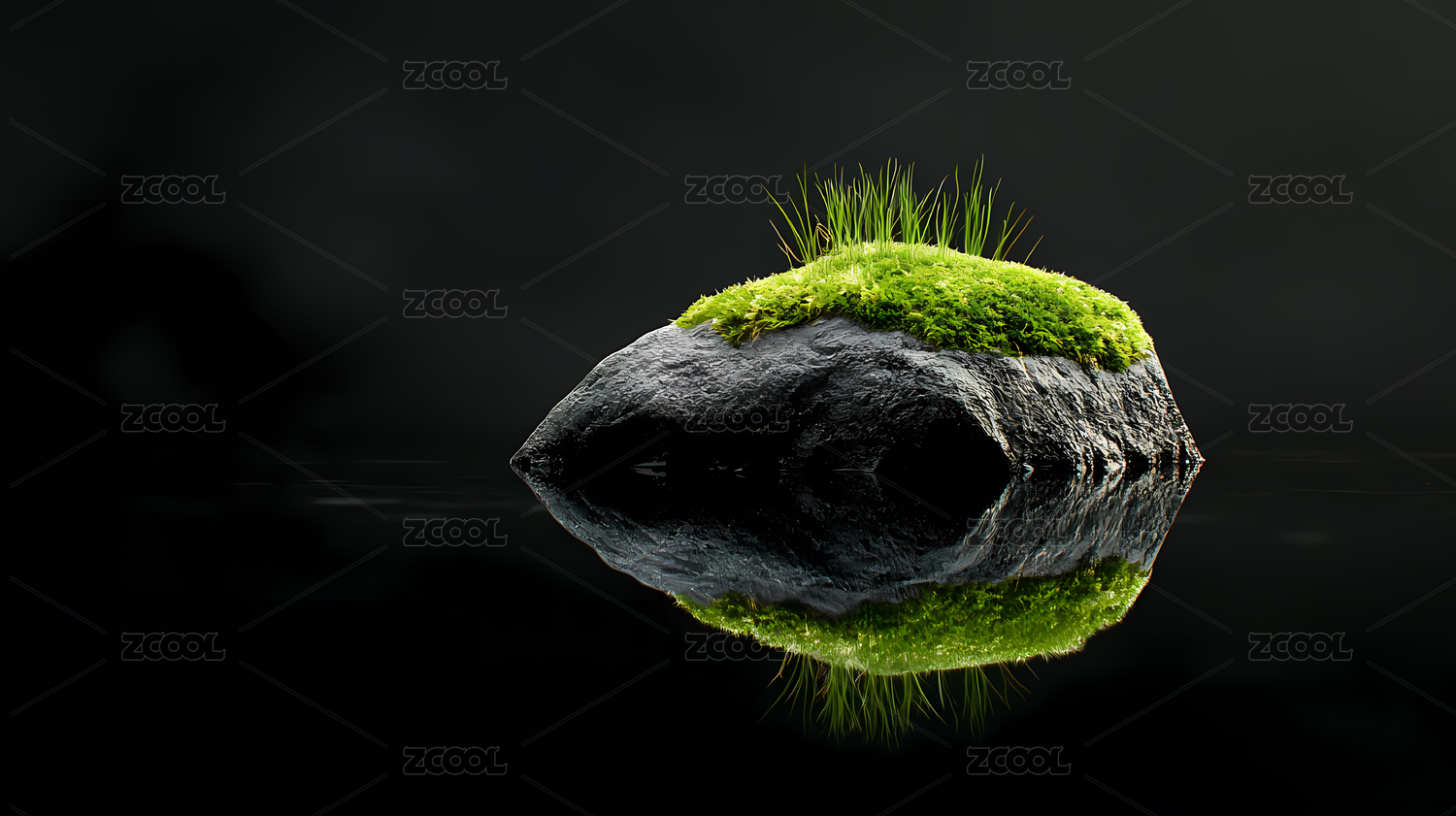 石头,自然,宁静,神秘,水面,倒影,平静,苔藓,反射