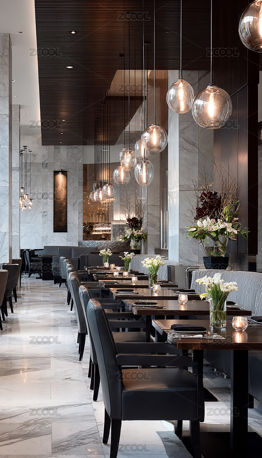 豪华餐厅内部装潢典雅桌椅整齐排列