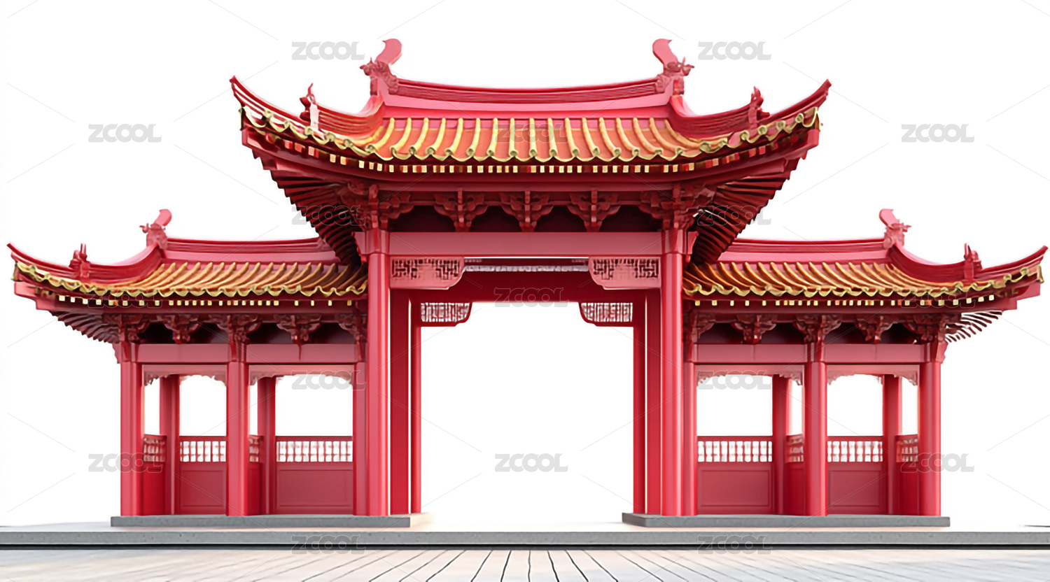 古建,元素,建筑,古风,中式,牌楼,红色,新年,节日,孤立