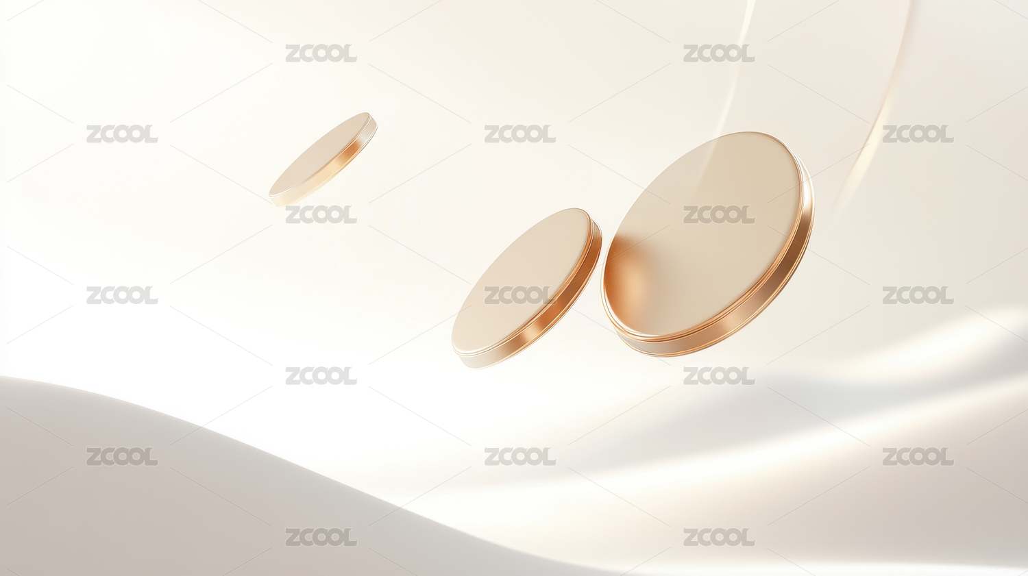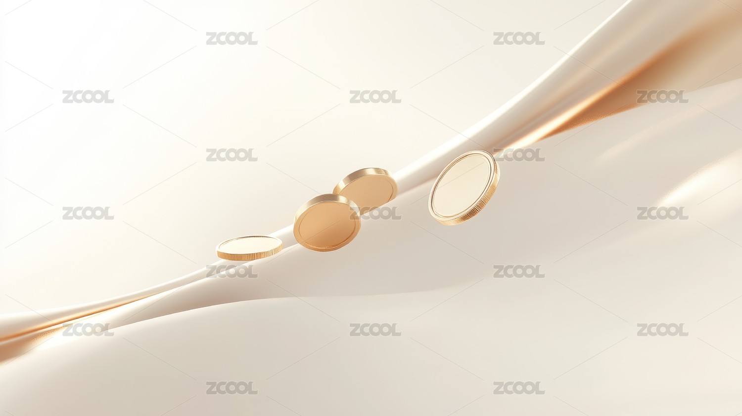 金色硬币在白色波浪背景上