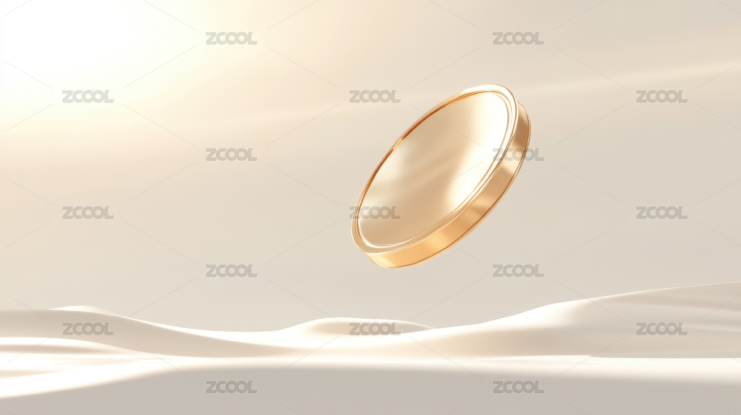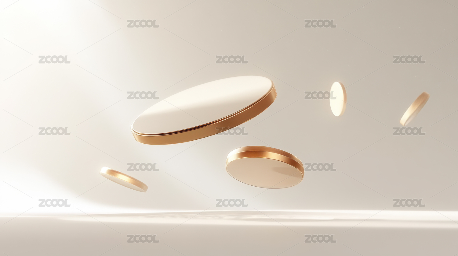 金色圆盘在白色背景上的悬浮