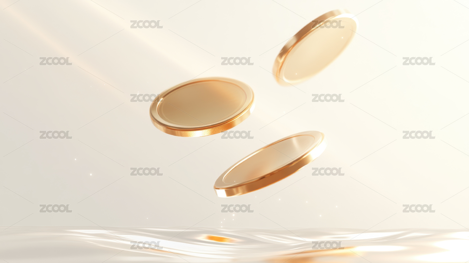 悬浮金币与流动的白色液体