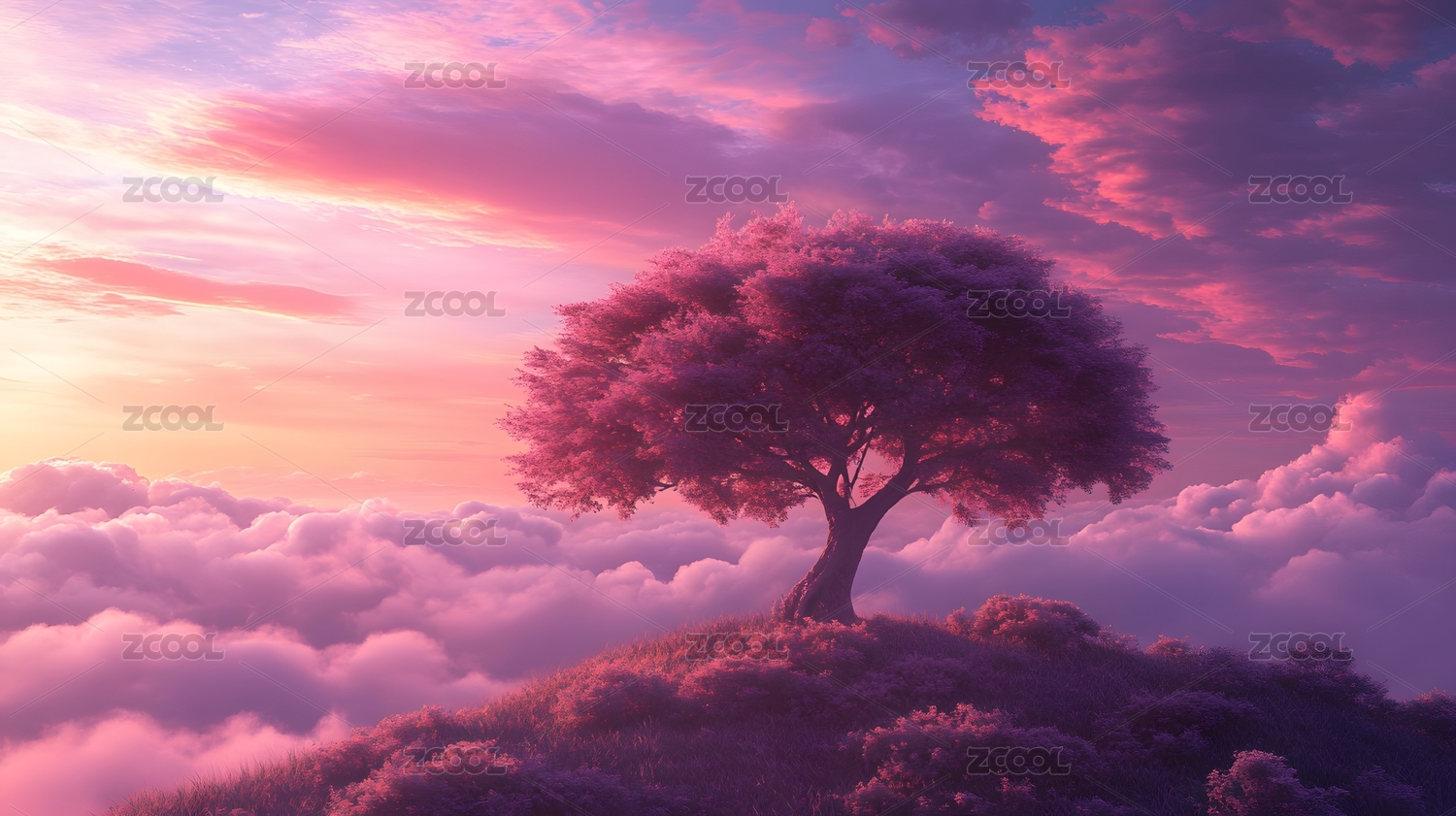美丽,橙色,天空,梦幻,自然,云彩,山丘,孤独,宁静,日落