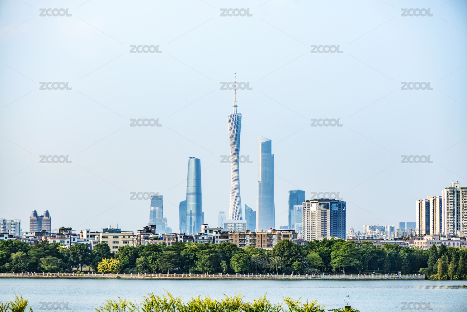广州城市风光—晴天从海珠湖远眺广州塔小蛮腰