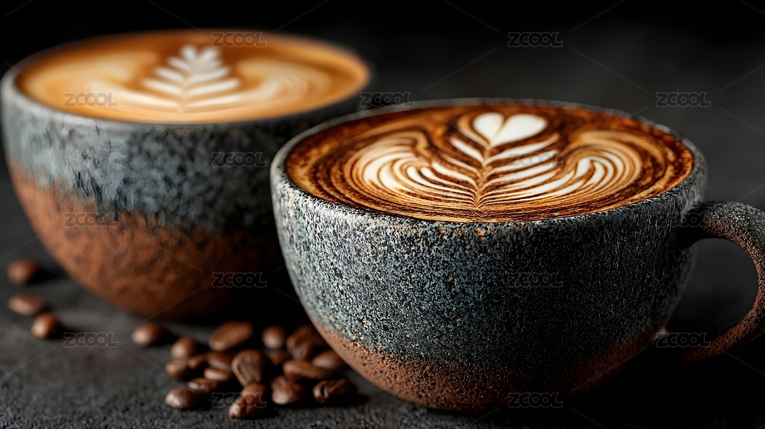 一杯榛果拿铁咖啡放在黑色岩盘上