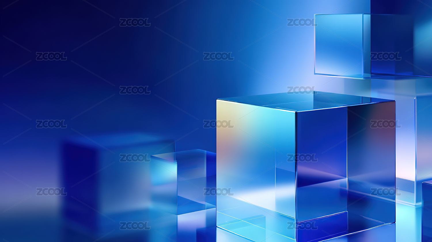 数码科技抽象几何蓝白色玻璃盒子海报背景