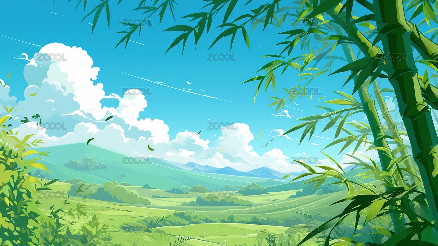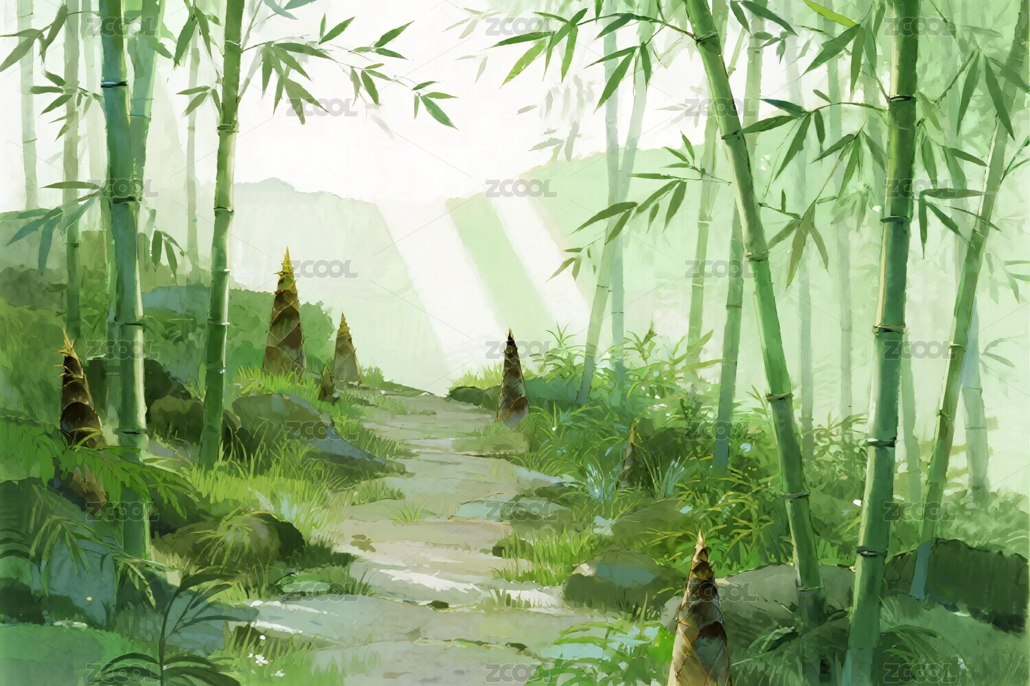 背景,插画,风景画,国潮风,画意,黄金,建筑物,金色,鎏金,绿色