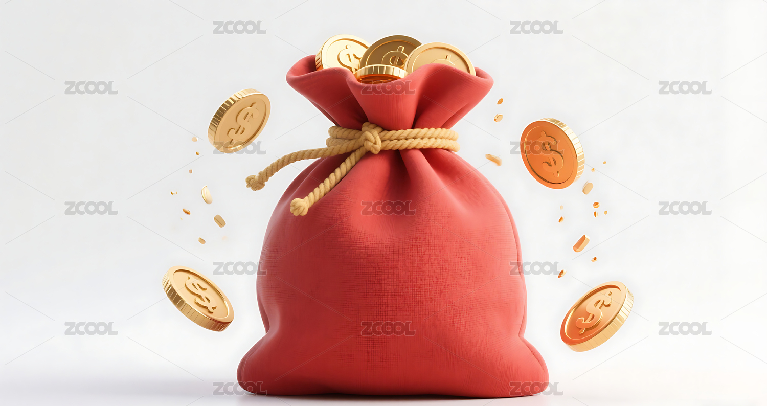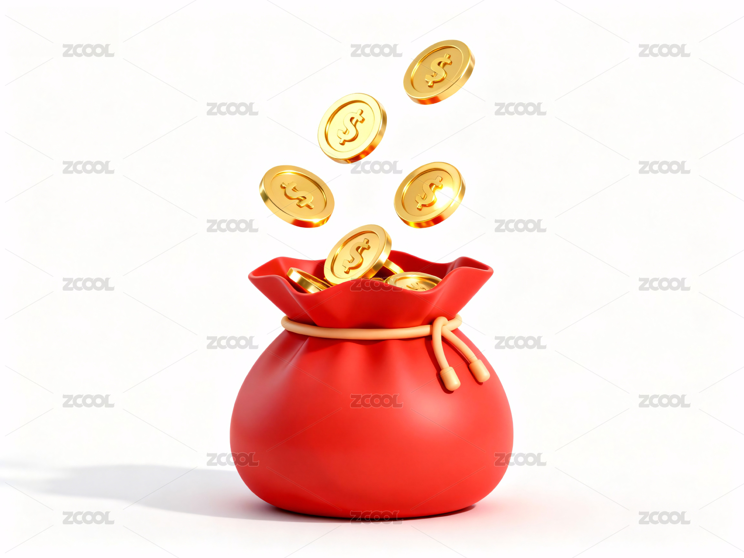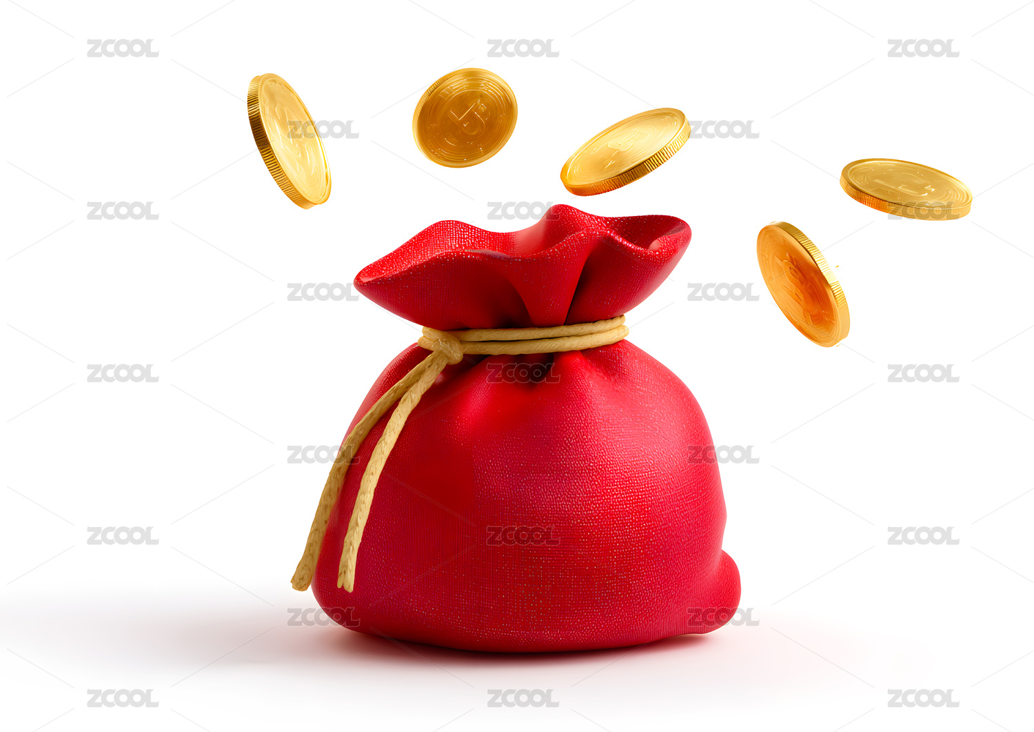 钱袋,发财,钱币,金币,聚宝盆,红包,红色,过年,百宝袋,龙年