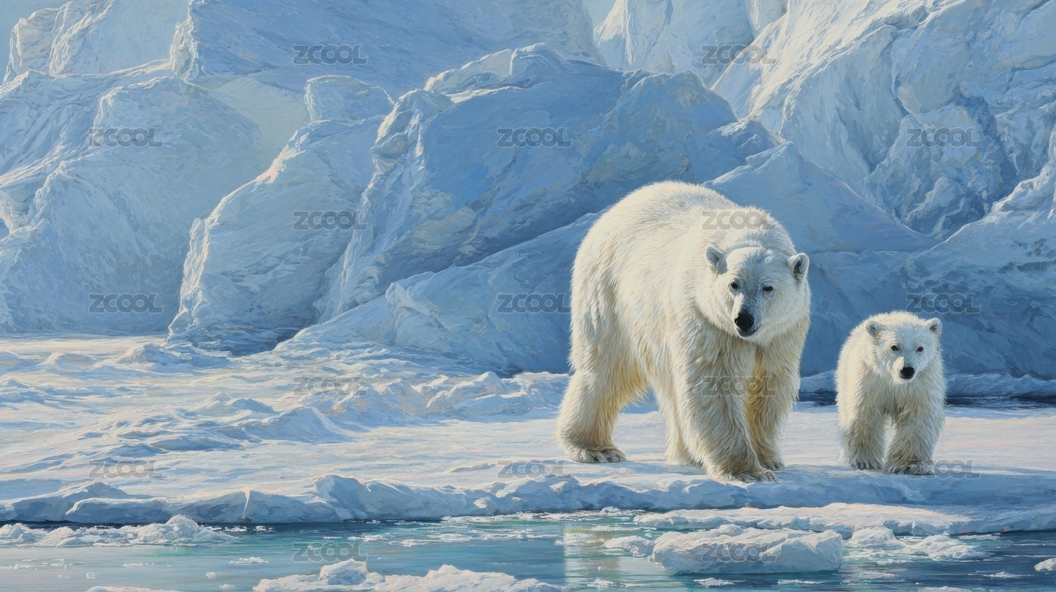 北极熊,北极,冰川,冰雪,野生动物,动物,哺乳动物,母子,家庭,寒冷