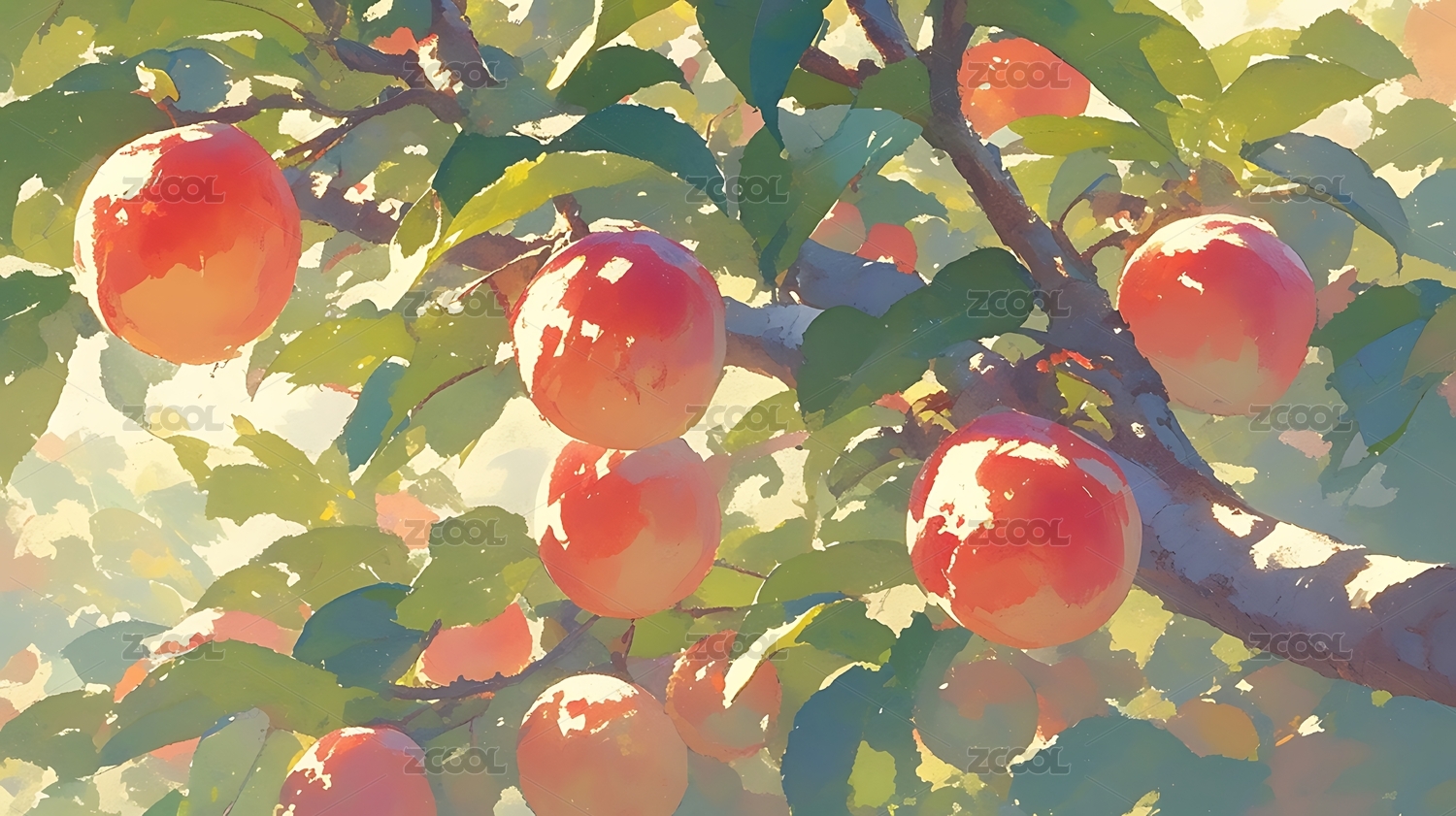 鲜桃枝头插画