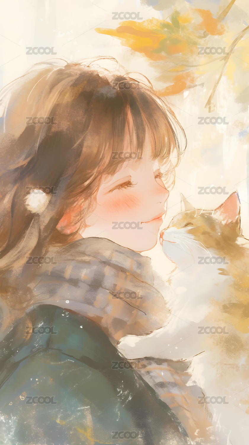 女孩,冬季,插画,绘画,艺术,雪景,雪花,温暖,唯美,浪漫