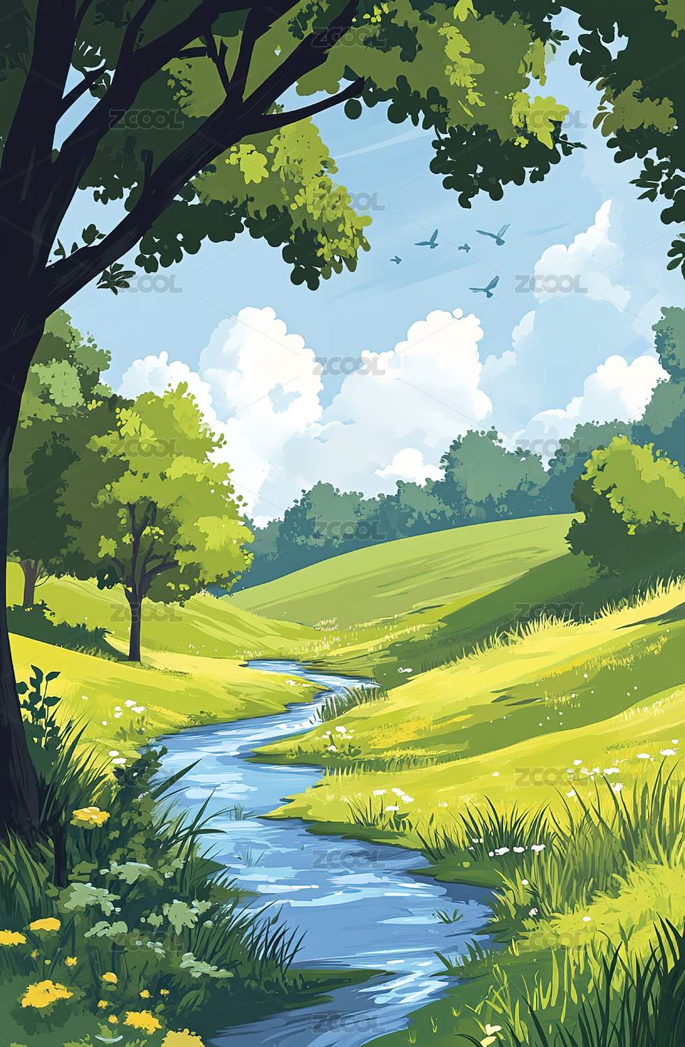 梦幻,树木,风景,自然,3D,立体,壁纸,背景,田园,风光