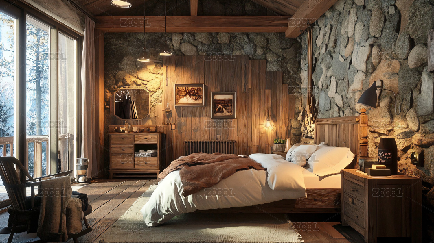 卧室,乡村,风格,木质,家具,黄色,墙壁,地毯,窗帘,窗户