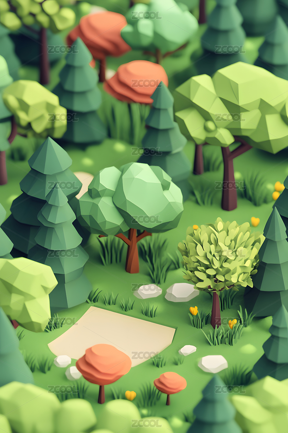 森林,溪流,树木,云朵,绿色,黄色,卡通,自然,风景
