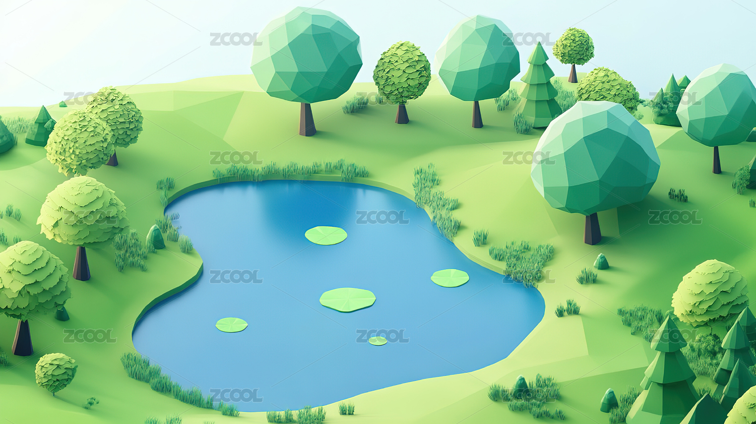 卡通森林与湖泊