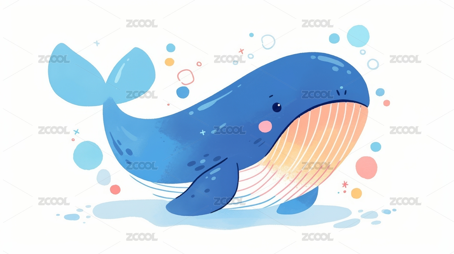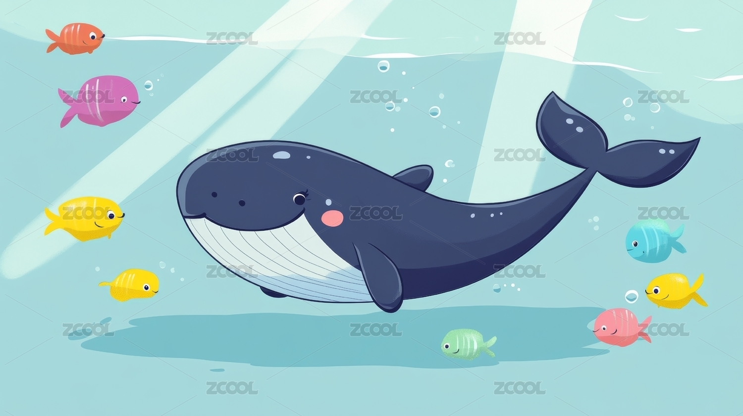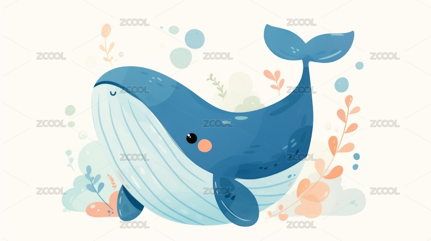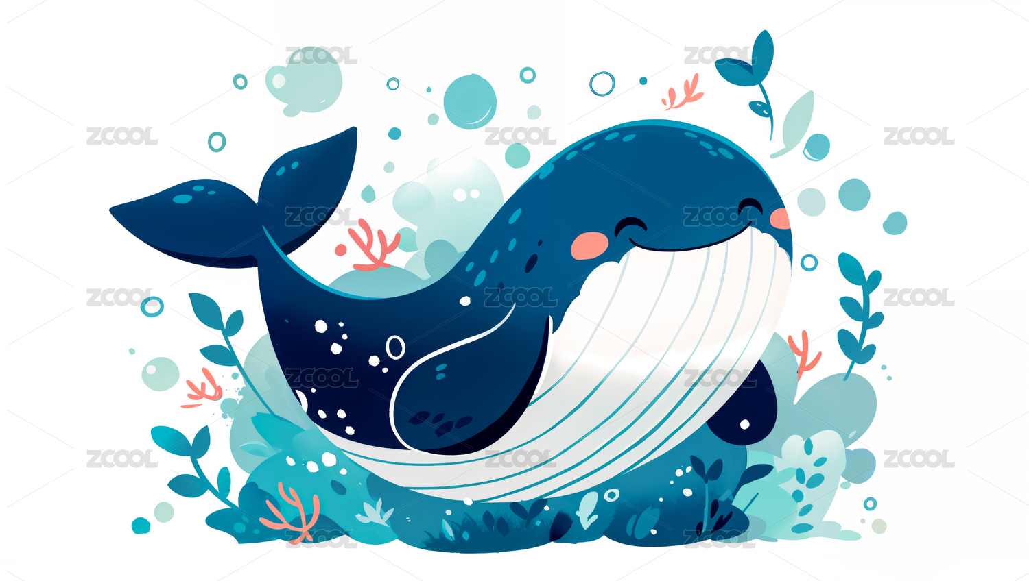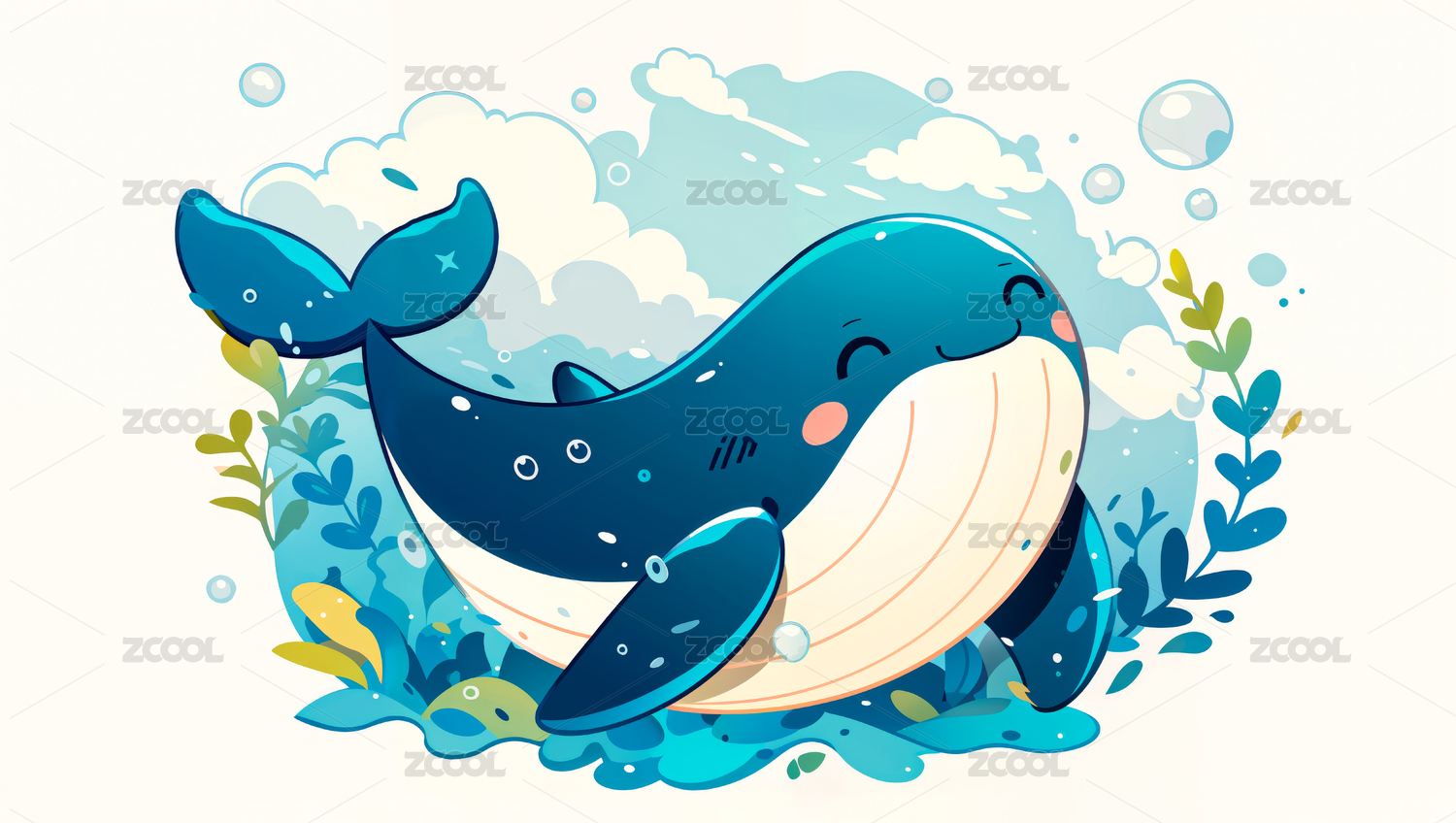 卡通,鲸鱼,水中,泡泡,可爱,蓝色,尾巴,眼睛,海草