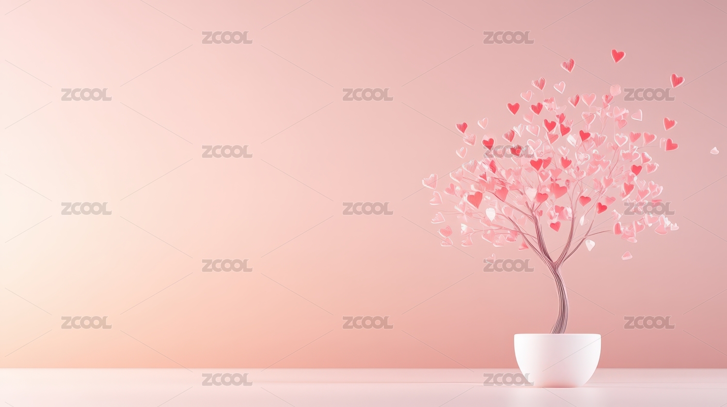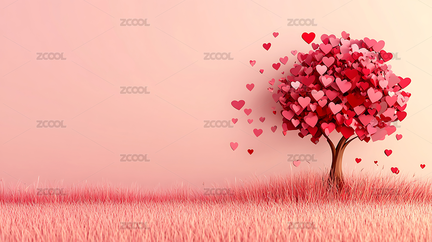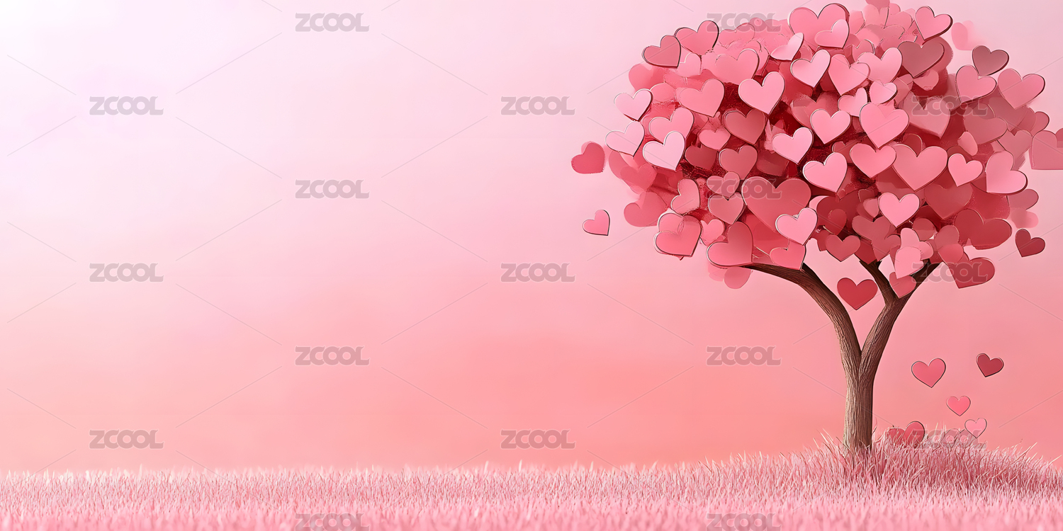 甜蜜粉色爱心树插画