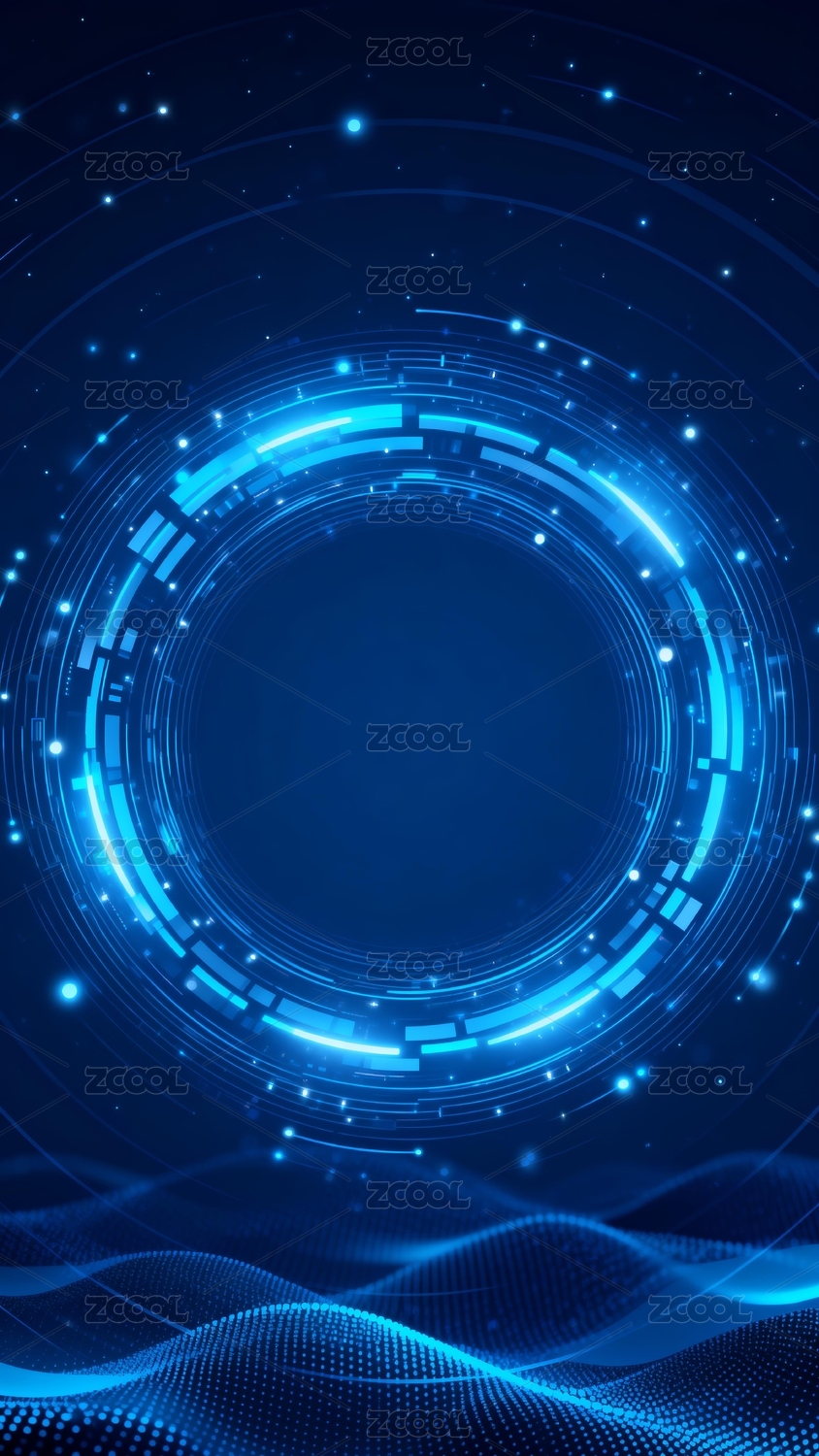 蓝色发光粒子线构成宇宙漩涡科技感展示台