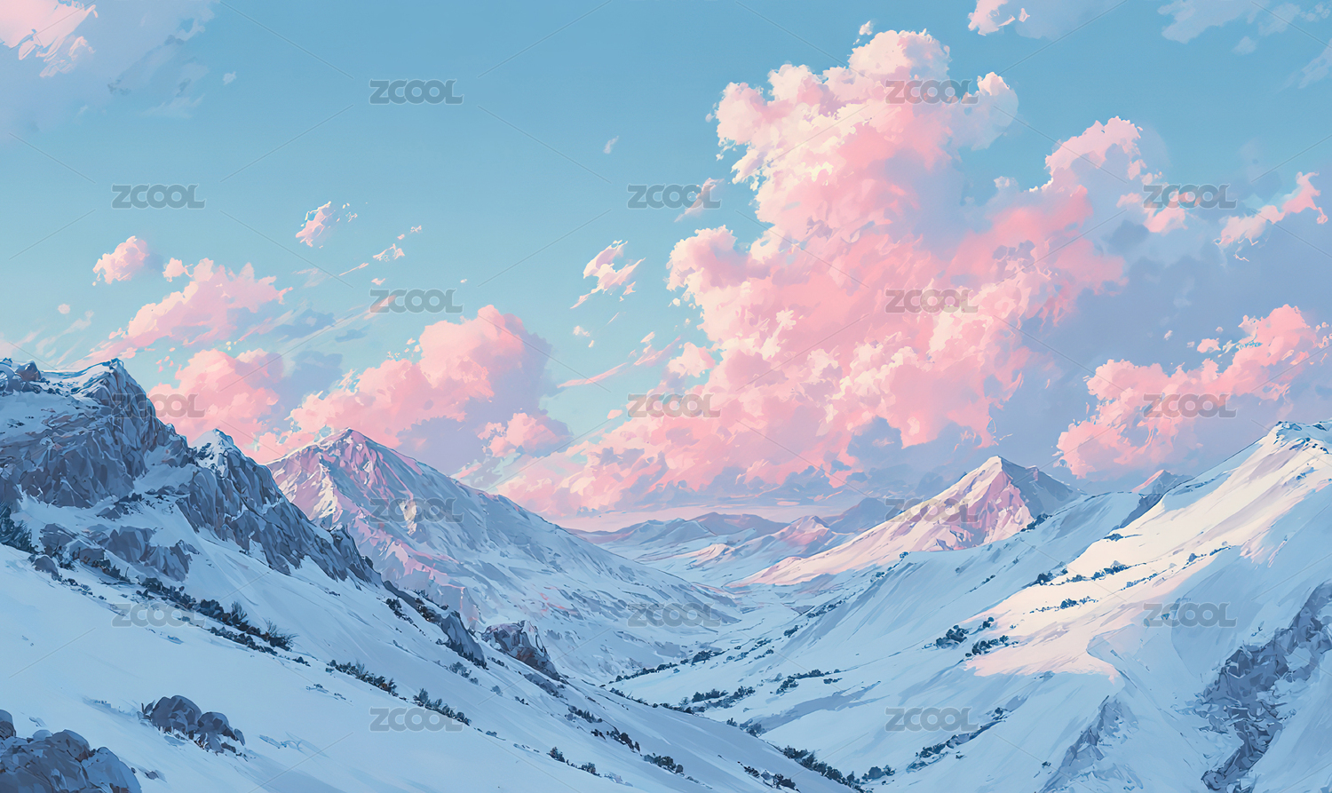 户外,冬天,雪山,风景,插画,自然,天空,云,高山,雪