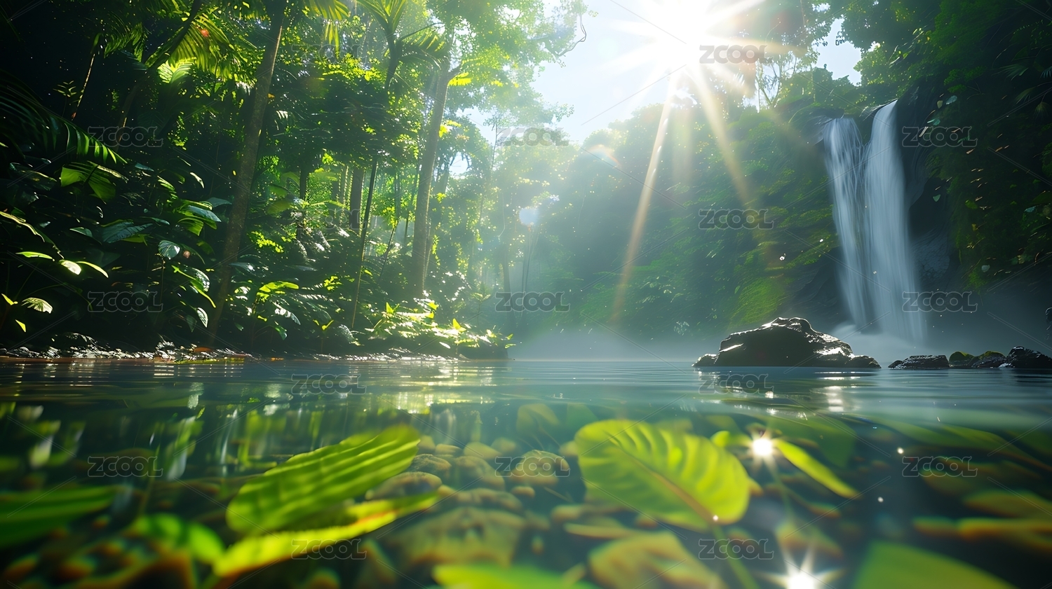 树木,自然,绿色,清新,宁静,光线,植物,阳光,水面,丛林