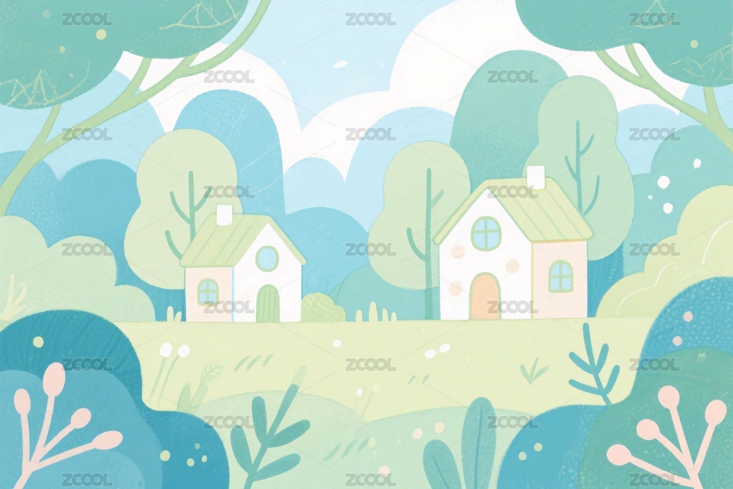 插画,绘画,可爱,小清新,春天,花,花朵,自然,户外,风景