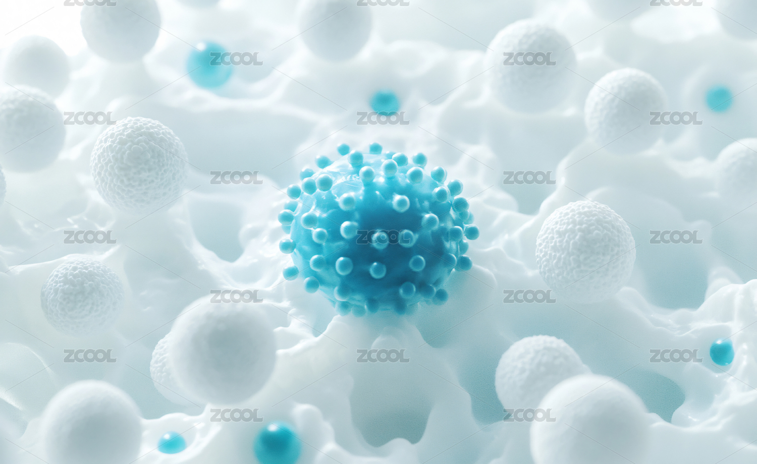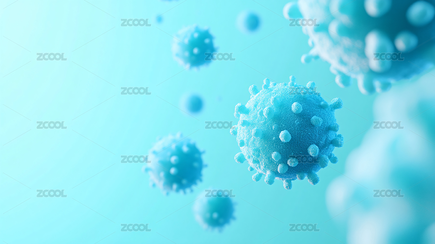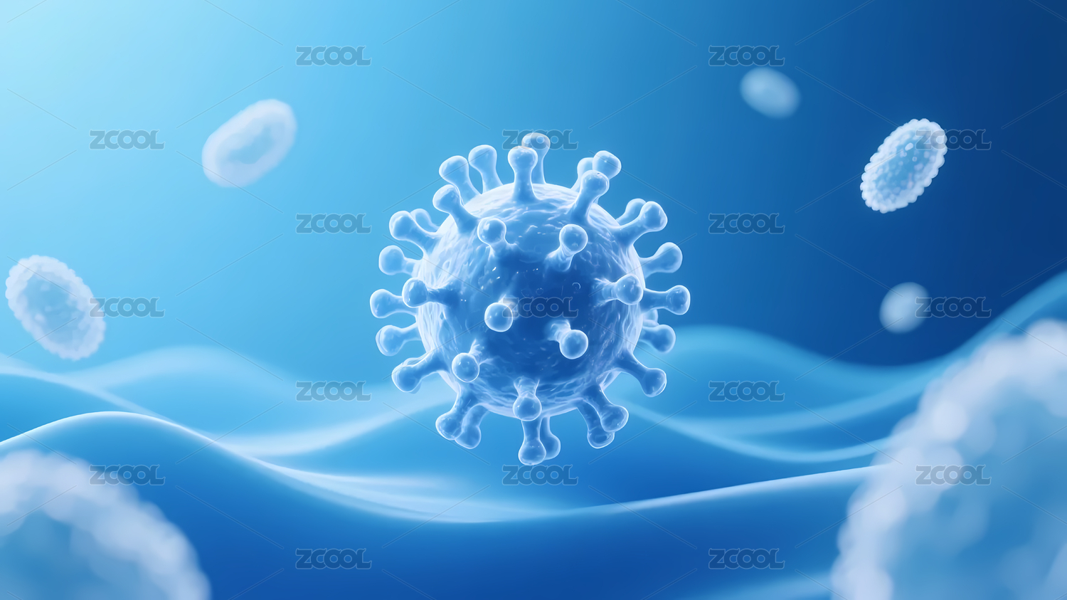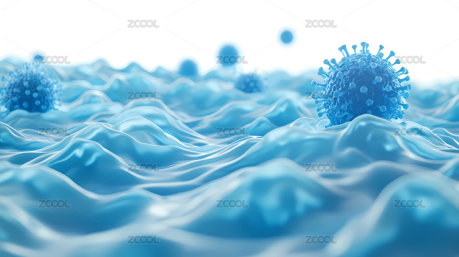 蓝色病毒颗粒在液体中悬浮的视觉图像