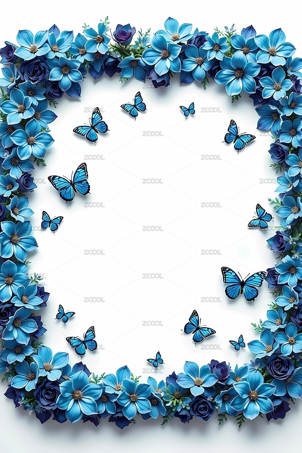 蝴蝶蓝玫瑰清新商业壁纸场景