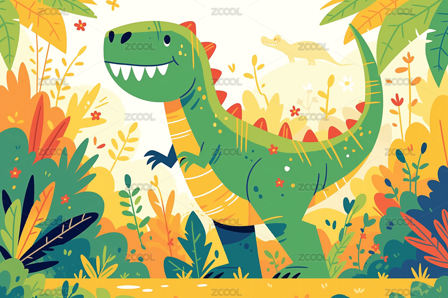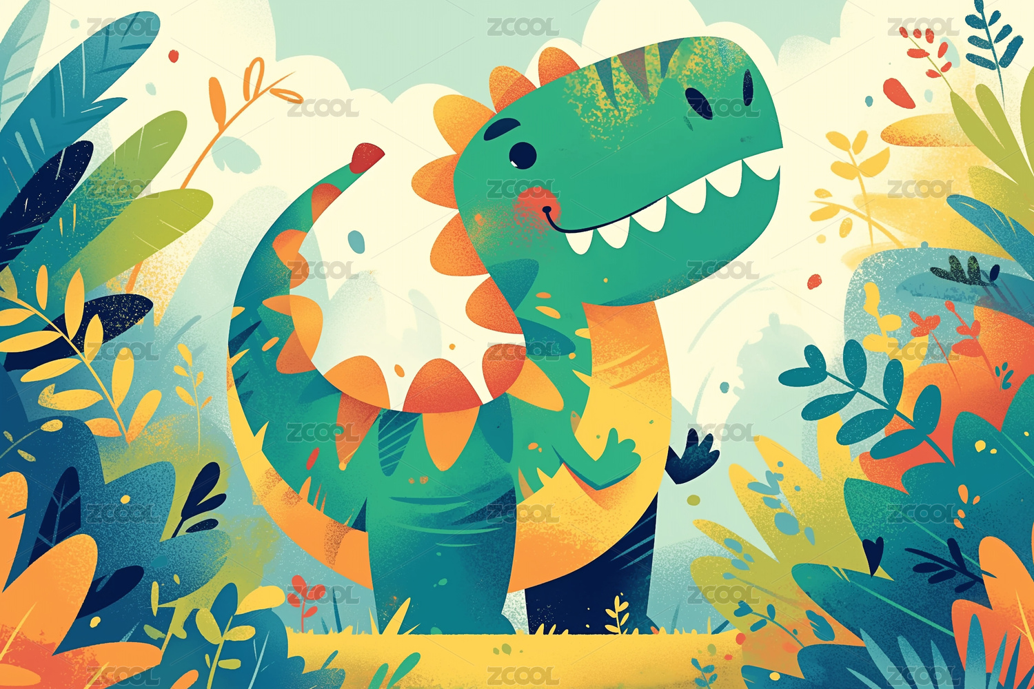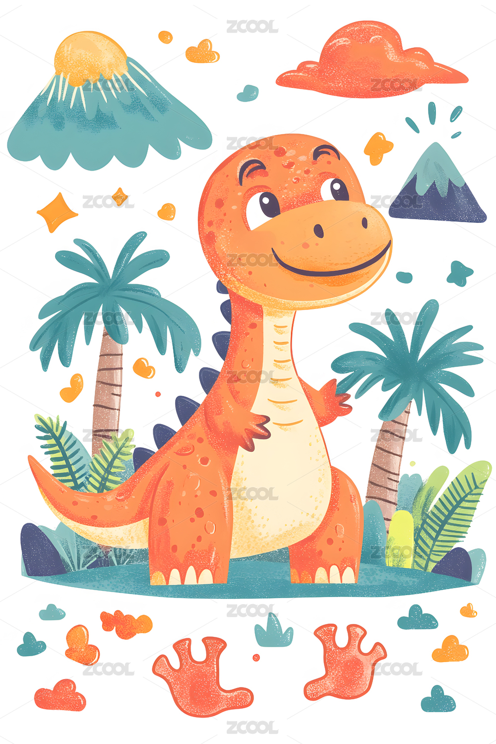 可爱恐龙插画,儿童教育概念插图可爱恐龙插