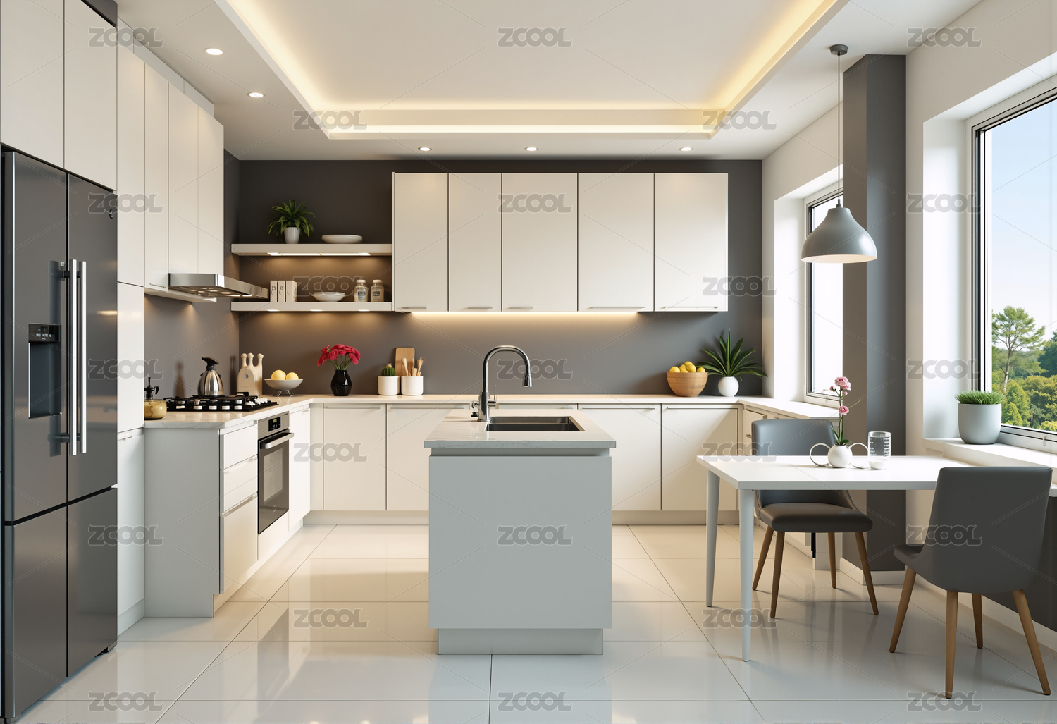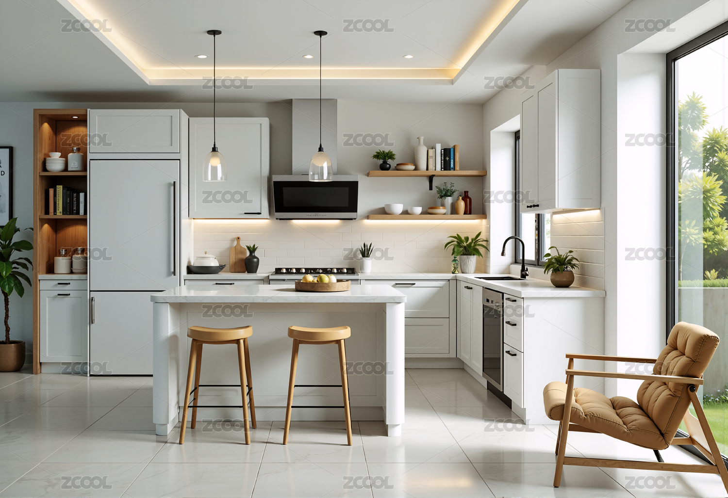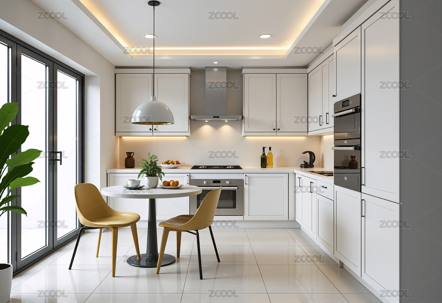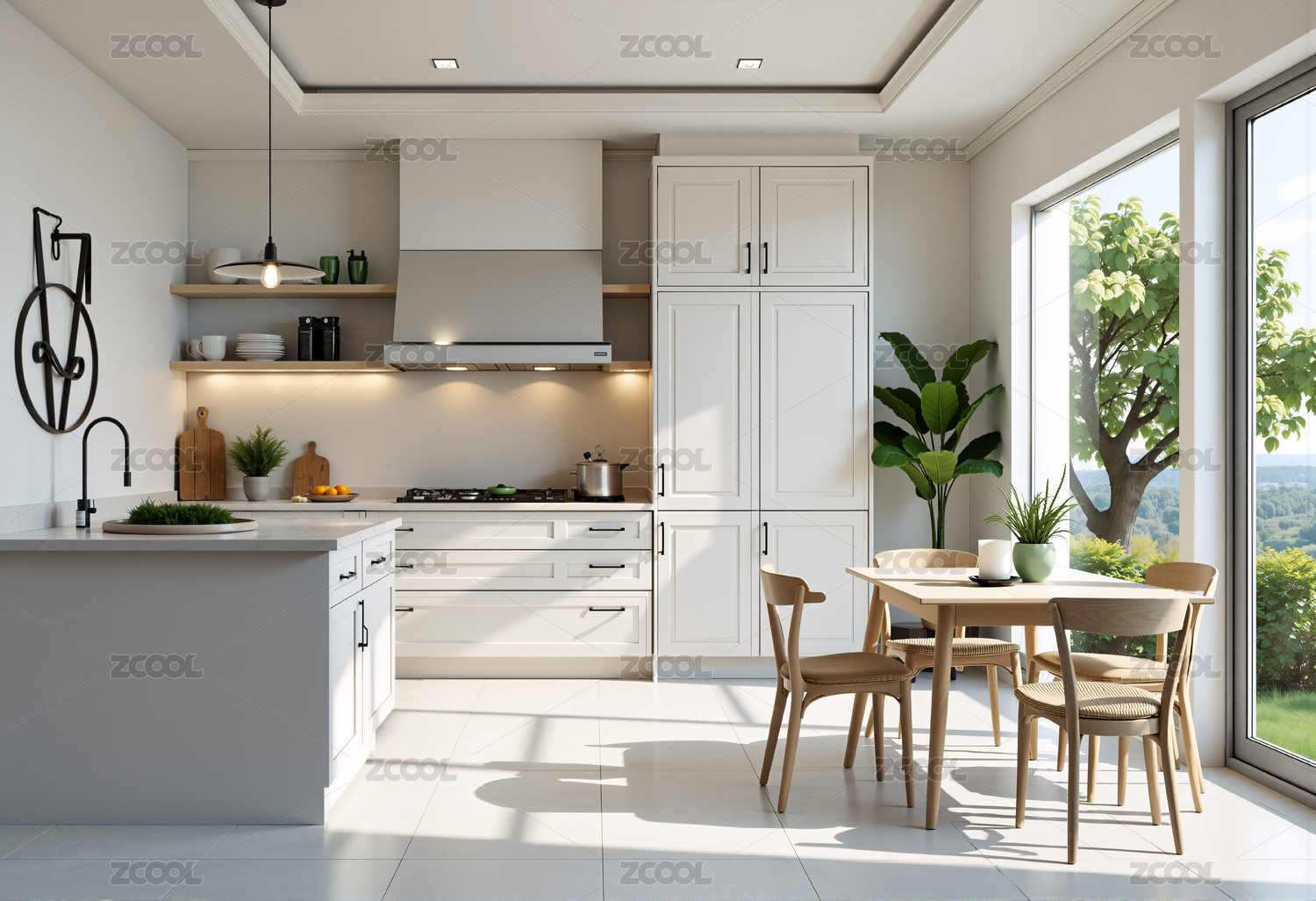 厨房,轻奢,奶油色,橱柜,岛台,灯光,家居,装修,家装,极简