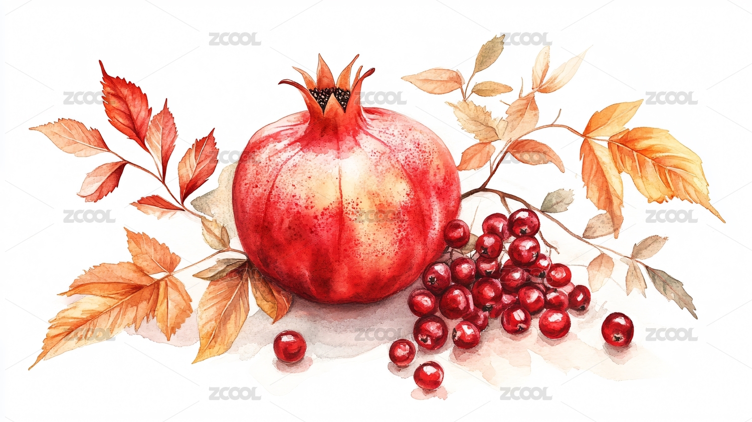 秋天的食物,水墨画