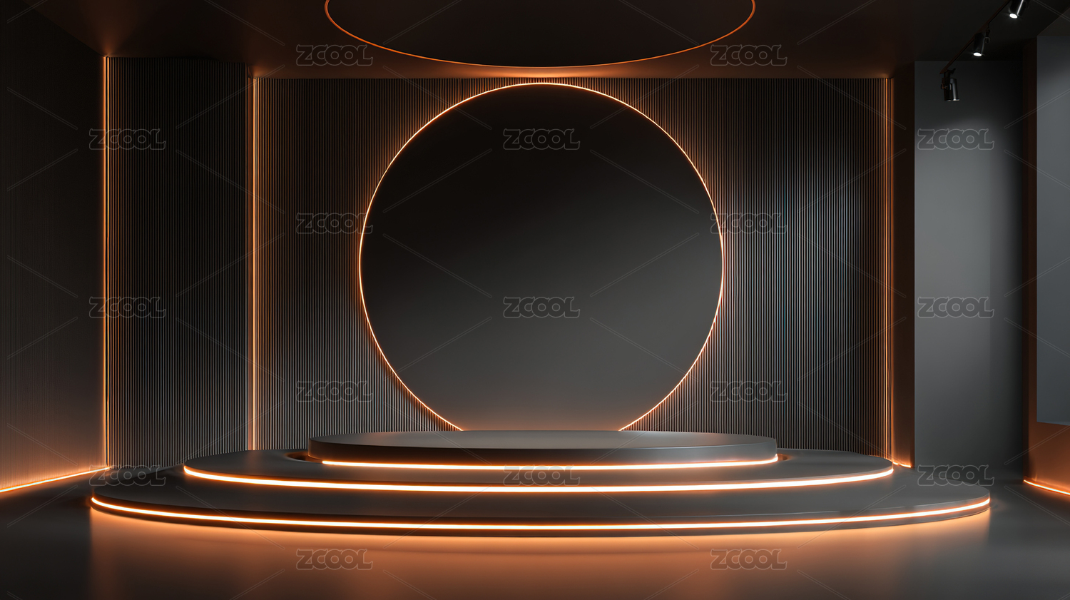 现代,室内,展示,平台,灯光,设计,圆形,舞台,装饰,简洁