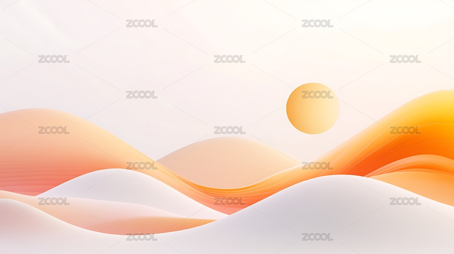 自然景观,抽象艺术,现代设计,艺术创作,艺术表现,山峦,光影效果,几何形状,橙色球体,色彩对比