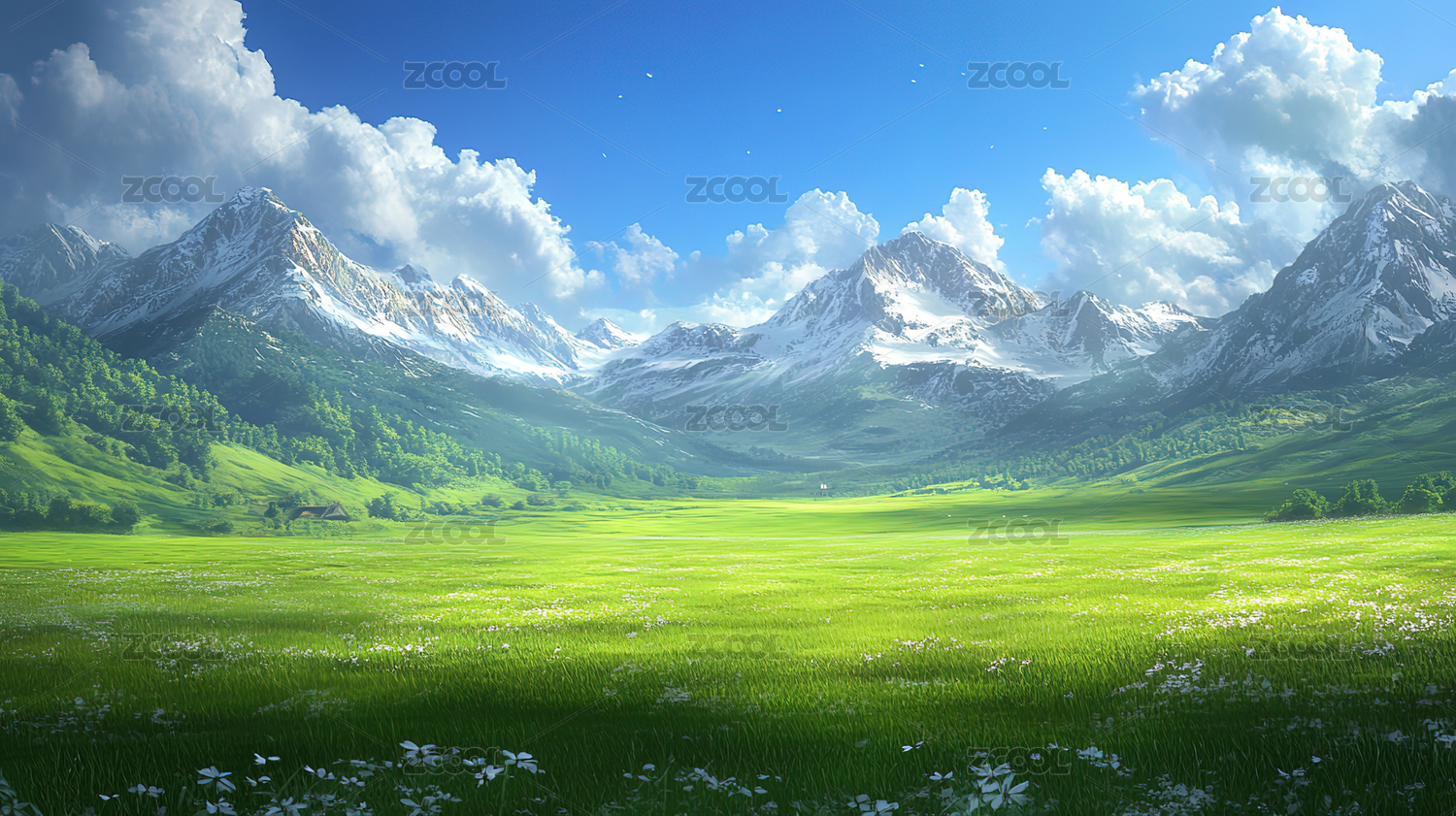 绿野雪山下的宁静