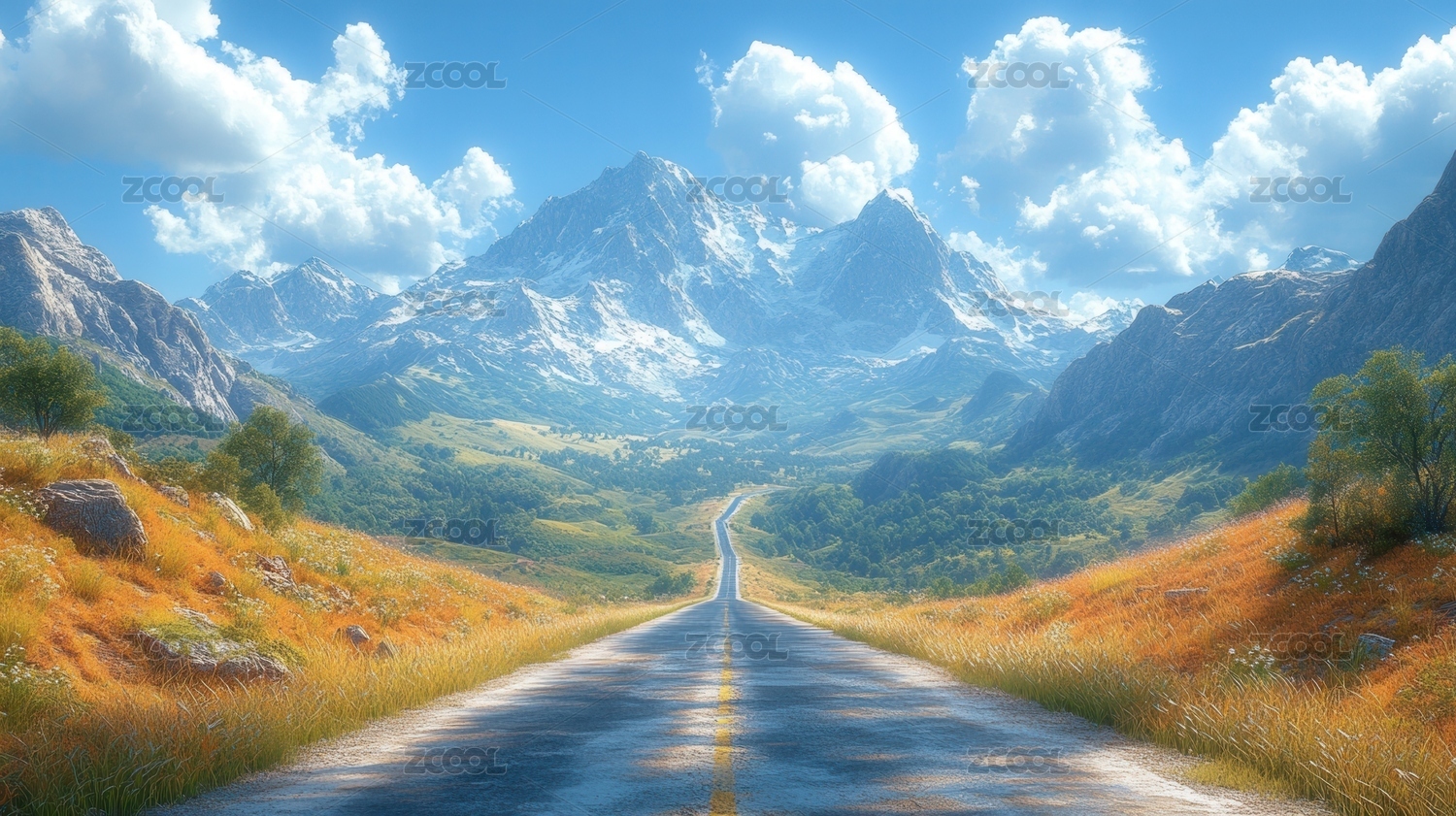 雪山下的草原公路