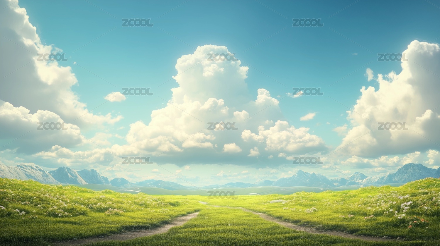 蓝天草原:通往山脉的宁静小径
